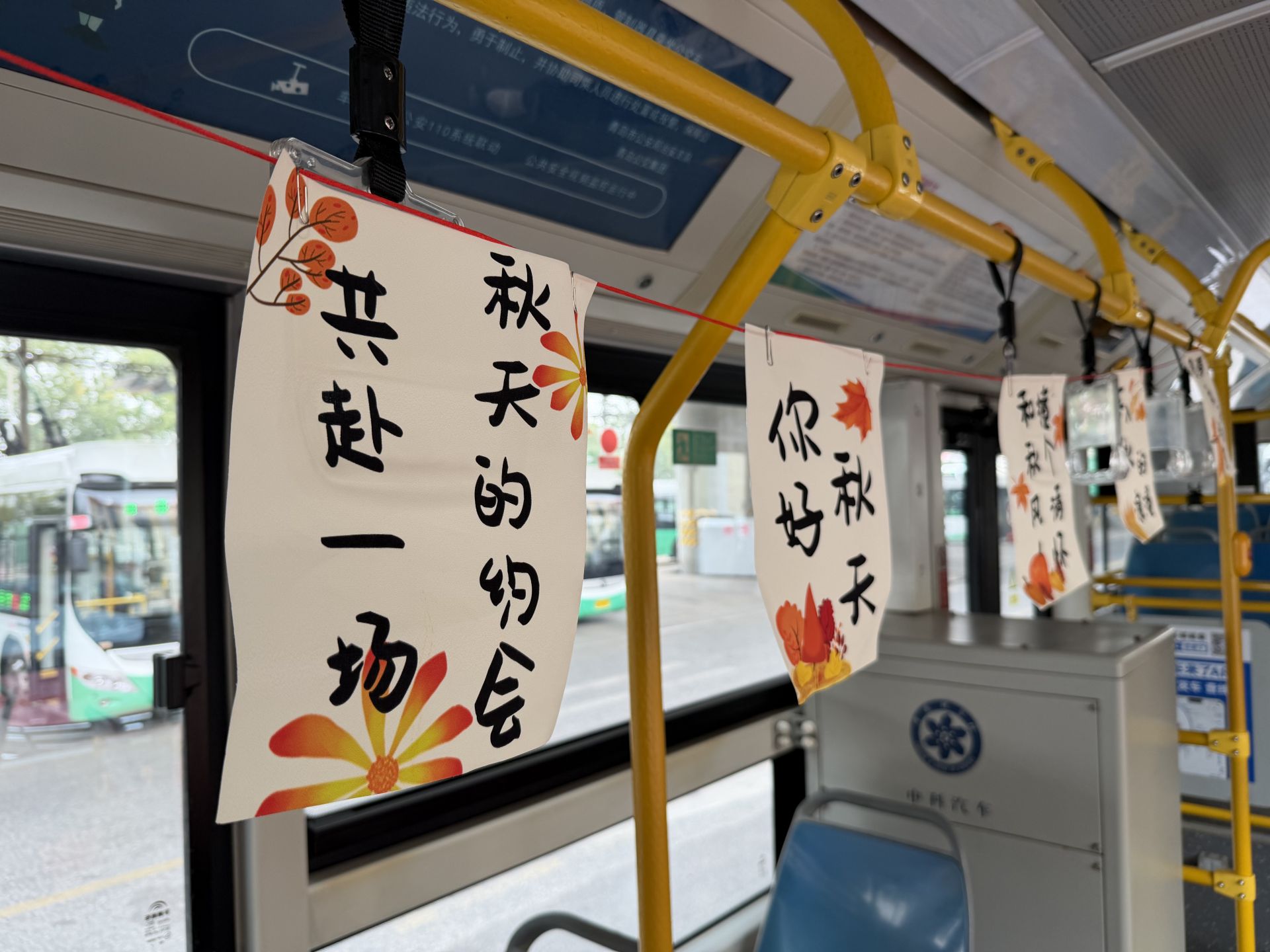 记者了解到,这面便签墙是王发伦半个月前特意布置的,起初只是想在秋意渐浓时,给乘客们一个抒发心情的小角落。他从家里带来了五颜六色的便签纸和几支彩笔,还特意写了一张“秋日寄语”的引导语:“亲爱的乘客,秋光正好,不妨写下你的期待、建议或感悟,让我们一起温暖同行。”