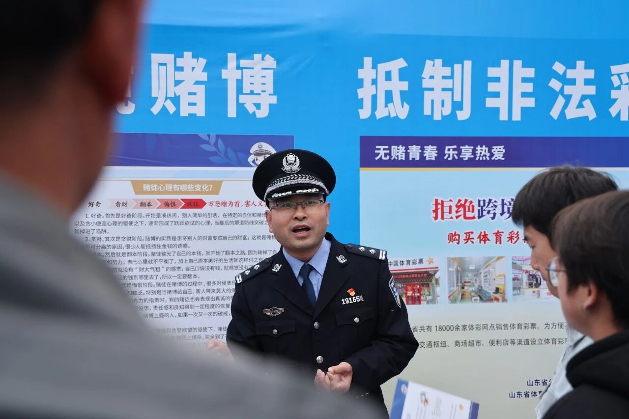 为常态化开展打击治理跨境赌博宣传工作,提升广大人民群众对跨境赌博严重危害的认识。10月26日,青岛市公安局携手青岛市体育局、青岛市体彩中心利用中超比赛大型活动期间,在西海岸大学城体育场开展“拒绝跨境赌博·抵制非法彩票”主题宣传活动。