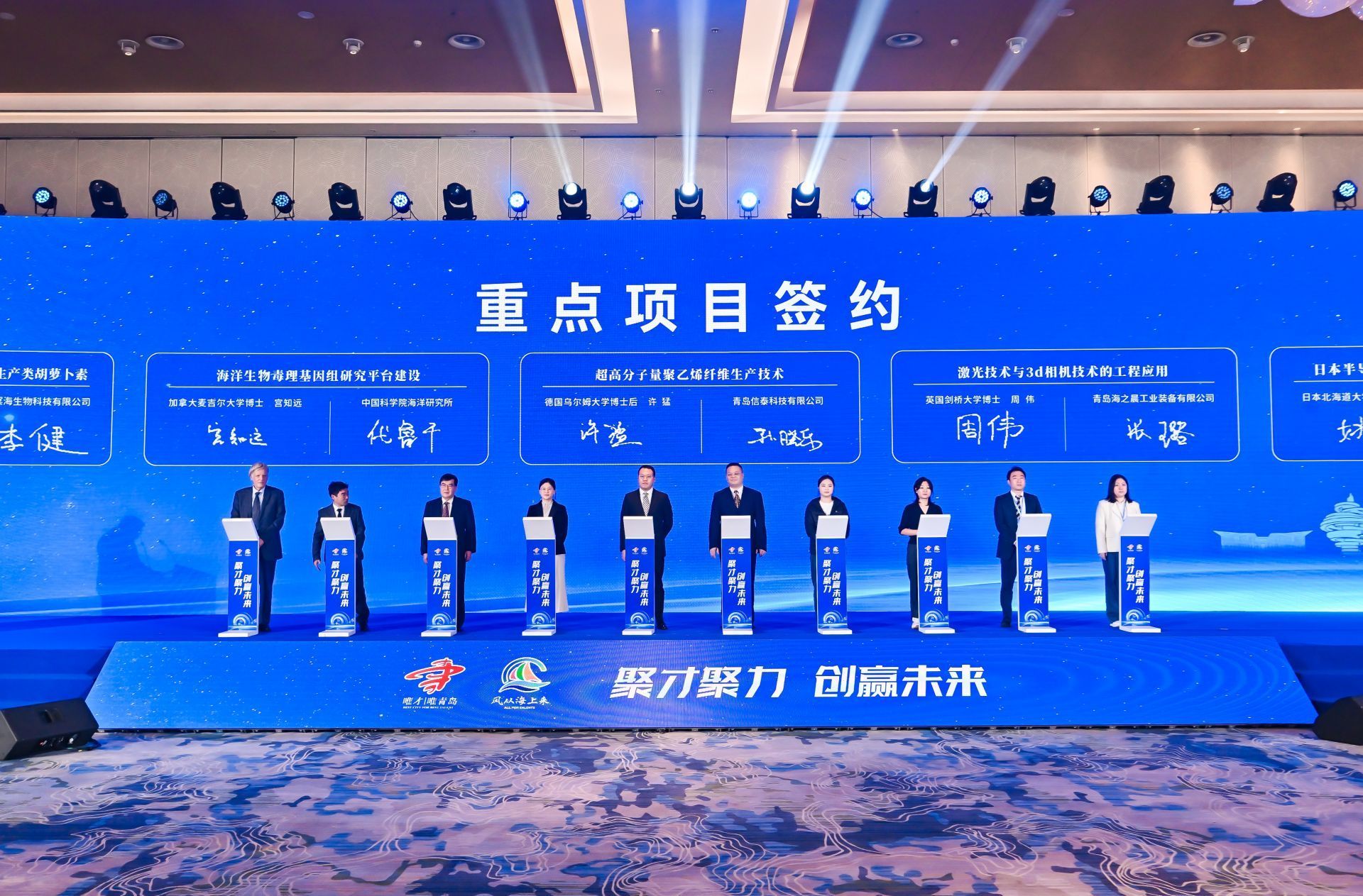 开幕式现场,5个重点项目完成签约,覆盖生物技术、半导体、海洋环境等前沿领域。其中,欧洲科学院院士斯拜罗斯·阿格图斯携“微藻室内LED光源兼培养技术平台生产类胡萝卜素”项目,与青岛冥海生物科技有限公司达成合作意向,该项目落地后,有望突破传统生产模式,探索出绿色环保、低成本的类胡萝卜素材料生产新路径,为青岛生物产业发展注入新活力。