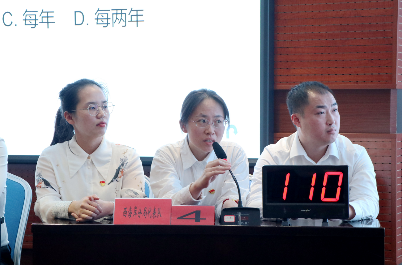 为进一步宣传会计改革发展成果,提升财会人员履职能力,青岛市生态环境局组织开展全系统财会知识比武活动,旨在以赛促学、以学促干,全面检验和提升财会人员的政策理论水平和实务操作能力,形成“比、学、赶、帮、超”的浓厚氛围。本次比武分预赛和决赛两个阶段,预赛采用笔试的形式,内容涵盖政府会计制度、预算管理以及内部控制规范等内容。决赛采用知识竞赛的形式,设置必答、抢答、风险选答、观众互动四个环节,题目设计注重理论基础与实际工作相结合,重点考察解决实际问题的能力。
