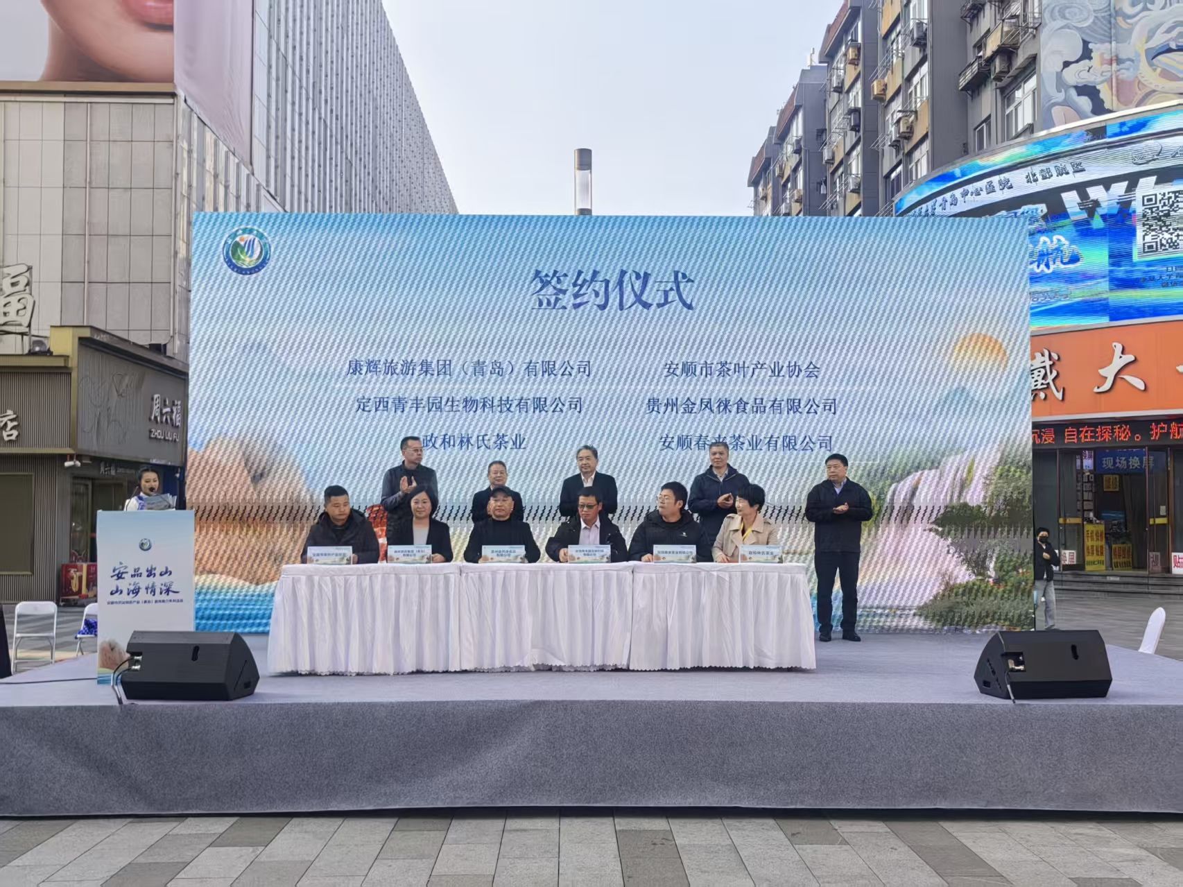 10月31日下午,以“安品出山,山海情深”为主题的安顺市农业特色产业推介会在青岛百年商业老街——台东步行街隆重举行,来自贵州安顺的23家农产品生产销售企业,带着30余种绿色健康优质农特产品在这里集中推介销售。活动现场,安顺市推介了安顺茶叶、贵州酸汤、安顺金刺梨等产业发展以及特色农产品情况。现场还进行了签约仪式,3家青岛企业分别与安顺签订茶叶等农产品采购协议,协议金额达3000余万元。