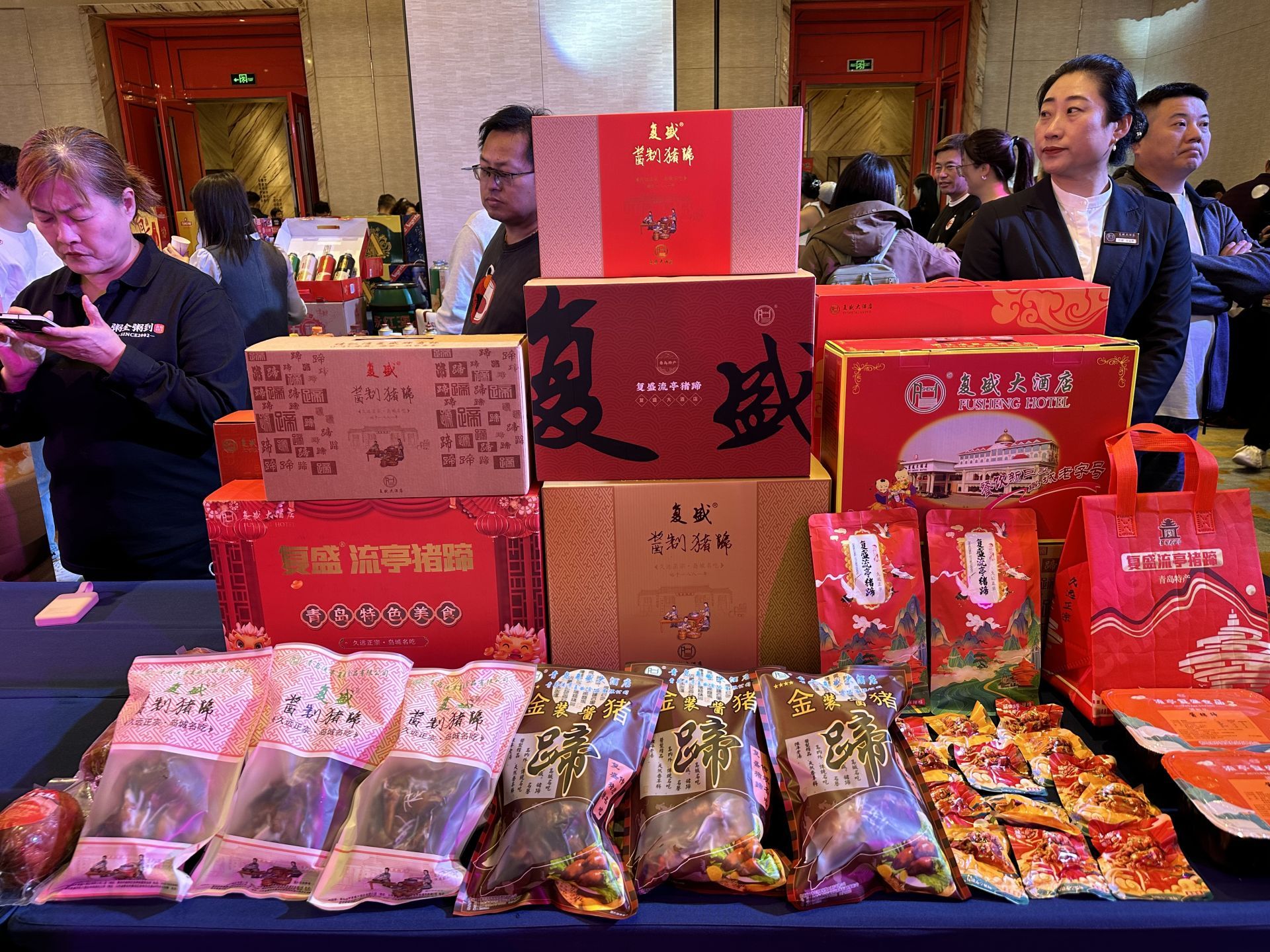 作为此次创新展的最大亮点,四大核心板块全方位呈现了老字号的“新活力”。在“经典·新生”老字号产品展示区,青岛啤酒、鑫复盛、春和楼等28家企业不仅陈列最具代表性的经典产品,还展出品牌历史文物,通过精心设计的宣传内容讲述老字号故事。青岛啤酒的复古瓶身、春和楼的百年菜谱,让观众直观感受品牌沉淀的岁月底蕴,同时也看到各企业推出的节日礼盒、便携装产品等创新品类,展现老字号对现代消费需求的适配。
