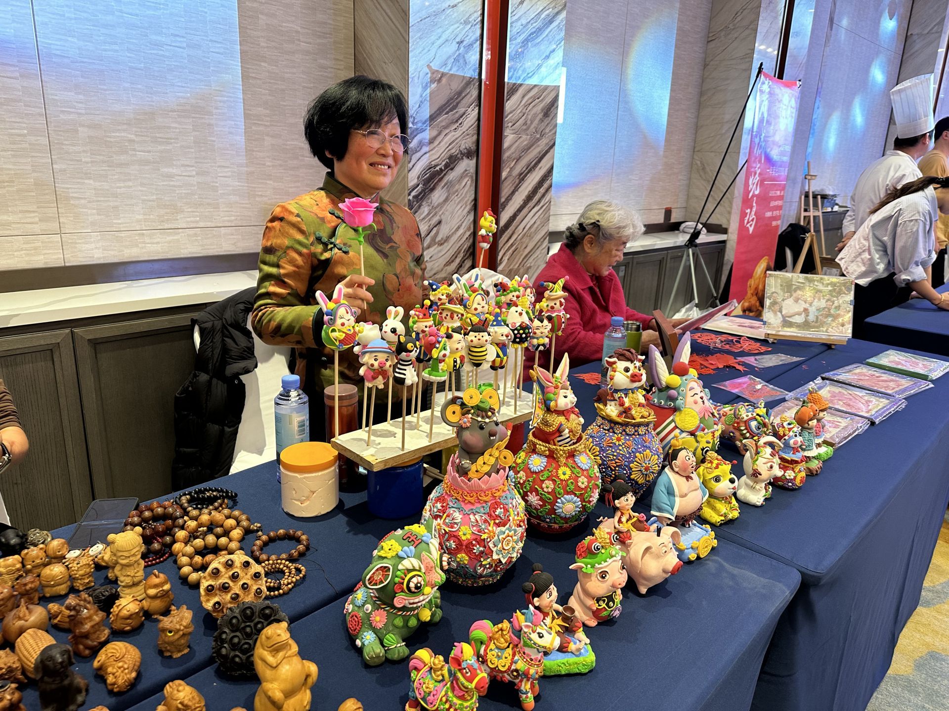 最具互动性的当属“手作·传承”老字号技艺制作互动体验区。5位非遗技艺大师现场定时段展示技艺,青岛剪纸的精巧、民间糖画的灵动、民间面人的鲜活、崔柏雕刻的细腻、高家糖球的传统制作工艺,不仅让观众近距离感受非遗魅力,不少人还亲自参与体验,尤其是年轻人对糖画、面人制作兴趣浓厚,在大师指导下尝试创作,实现了老字号文化与年轻群体的深度对话。