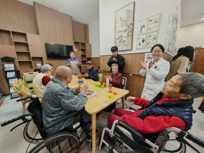 随后,代表们来到崂山区金家岭街道社区嵌入式失智老年人照护中心。中心设有20张床位及助老餐厅、康复训练区等功能空间,其温馨的居家场景和专业的照护服务为失智老年人提供了安心港湾。