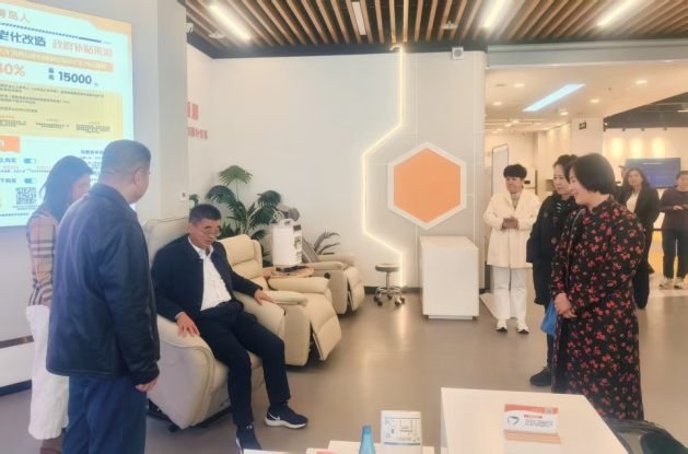 随后,代表们还来到青岛市民政局老年活动中心的康复辅具·养老科技创新产品体验中心,沉浸式体验涵盖衣、食、住、行等多场景的先进适老产品与科技解决方案。这个集展示、体验、销售、培训于一体的开放平台,是连接市场与需求、推动“银发经济”发展的重要窗口。今年,青岛市开展了消费品以旧换新居家适老化改造项目,目前累计改造4500余户,老年人可以“线上+线下”便捷挑选心仪产品,在手机上申请,就能享受到政府补贴,实惠又方便。不少家庭借此机会改造了卫生间、厨房、卧室等老年人高频活动区域,让老年人老有所“安”。