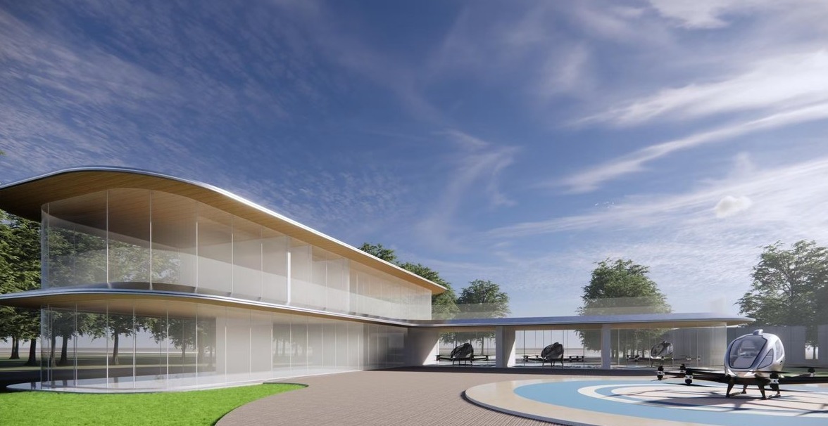 北方首个eVTOL环海低空文旅交通综合枢纽示范基地起降场效果图
