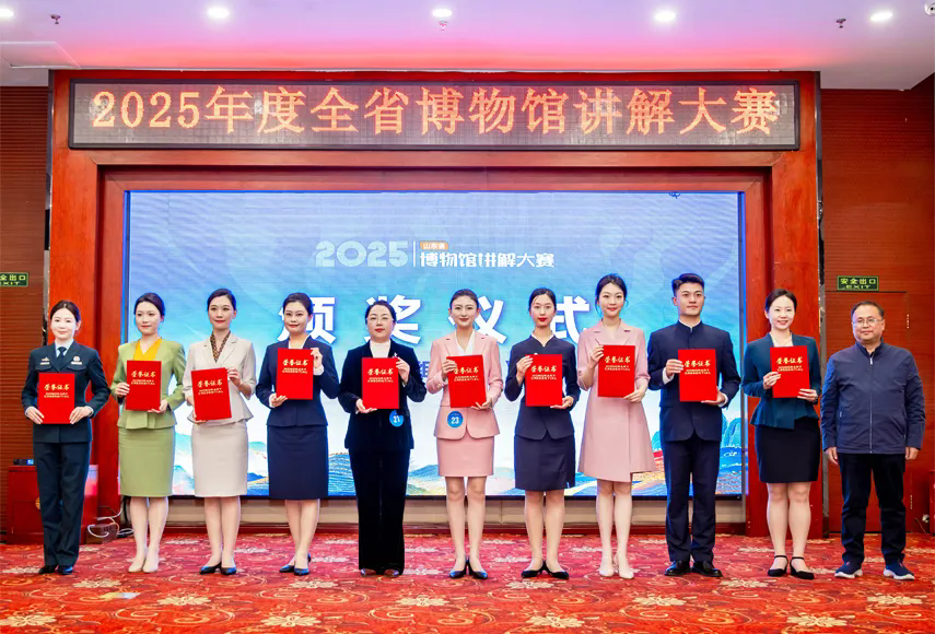 近日,由山东省文化和旅游厅主办的“2025年度山东省博物馆讲解大赛”在青州圆满落幕。历经初赛、复赛与决赛的多轮激烈角逐,青岛市博物馆讲解员刘璐凭借扎实的专业功底与生动的表达能力,以《漆承千年韵 情系家国心》专题讲解荣获大赛专业组一等奖,展示了博物馆长期以来通过搭建系统化培训体系、开展常态化业务练兵、实施梯队化人才培养等建设成果与风貌。