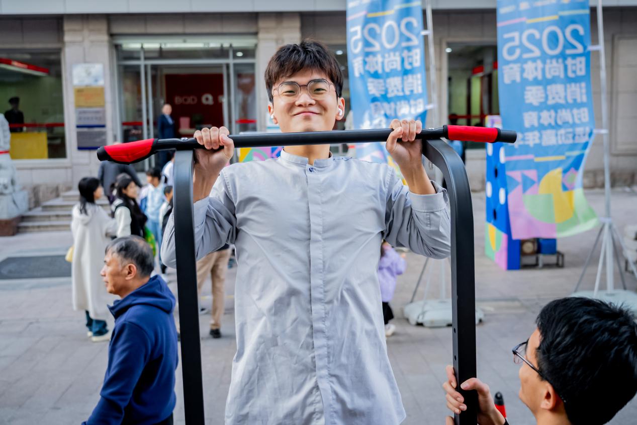 据介绍,这场以“秋日开练,时髦出街”为主题的体育嘉年华活动是2025青岛时尚体育消费季中的一部分。活动全程免费开放,通过趣味挑战(如引体向上挑战、摸高大赛)吸引大量市民参与,尤其青少年和家庭群体参与度较高。