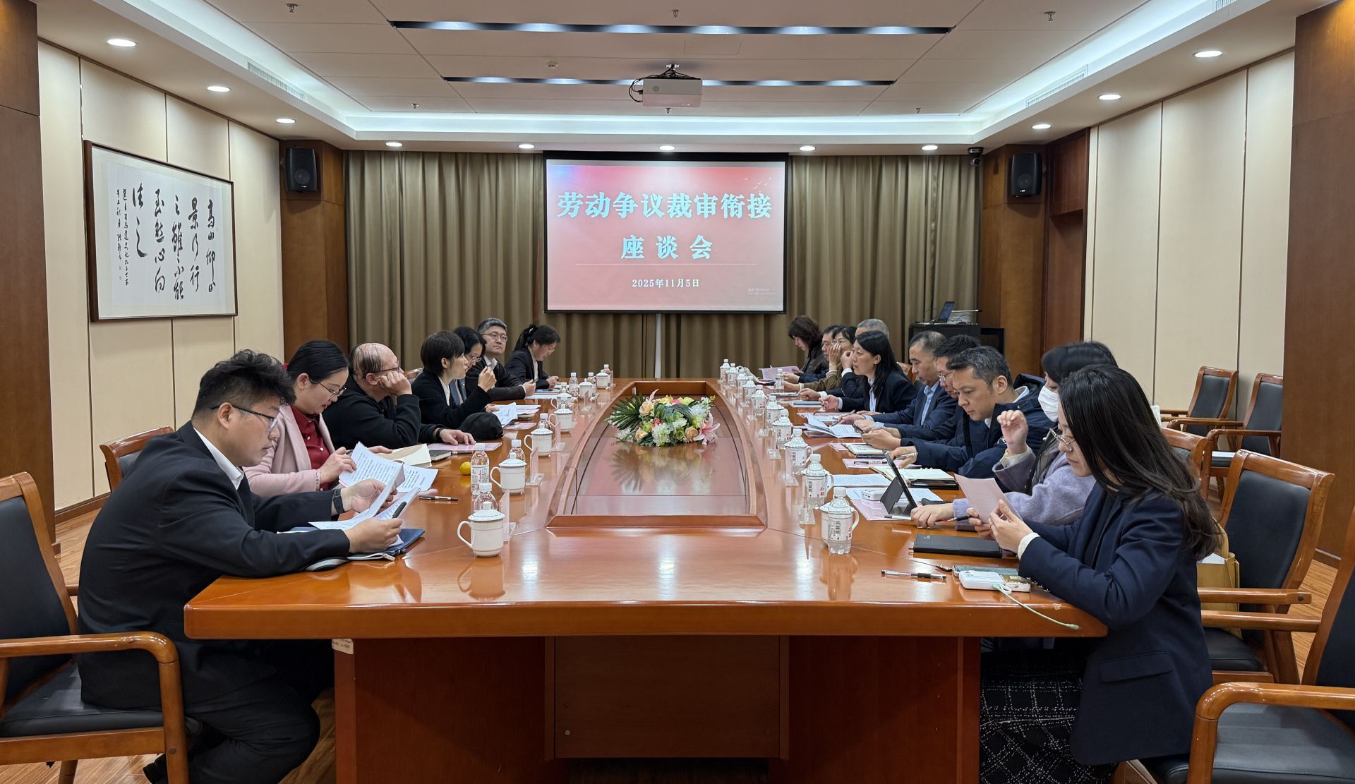 仲裁诉讼业务能力提升培训班结束后,一场紧扣实务的裁审衔接座谈会接续举行。青岛市劳动人事争议仲裁院、青岛市中级人民法院金融庭及部分区市业务负责人聚焦当前劳动争议中社会保险争议、工伤待遇争议等高频纠纷,深入剖析案件办理中的堵点与难点。与会者将议题延伸至前沿领域,针对《最高人民法院关于审理劳动争议案件适用法律问题的解释(二)》颁布实施后,仲裁与诉讼在法律适用上亟待理顺的衔接问题,进行了深入研讨。此次交流不仅有效统一了办案理念,强化了劳动法律适用问题的认知协同,更为进一步深化裁审衔接、凝聚劳动人事争议共治合力奠定了坚实基础。