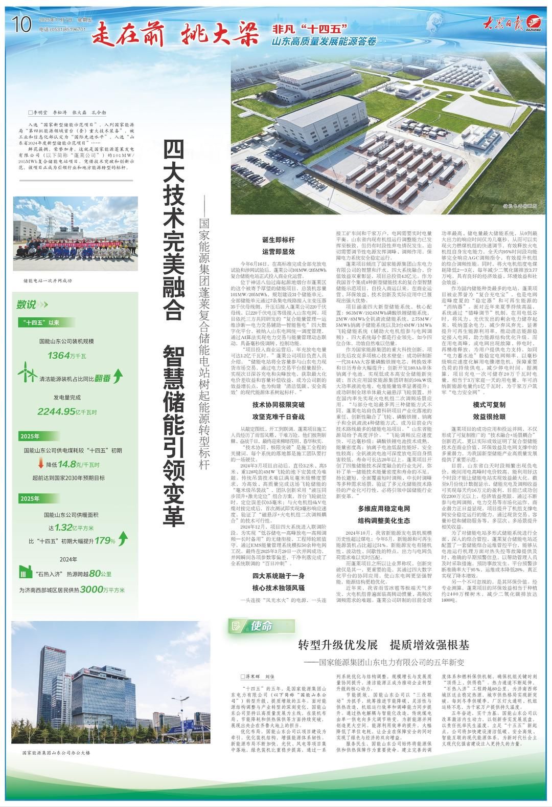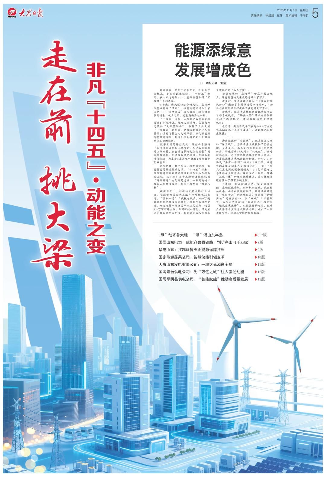大众日报推出“走在前 挑大梁——非凡十四五·动能之变”特别报道,看山东能源革命如何为发展增色。