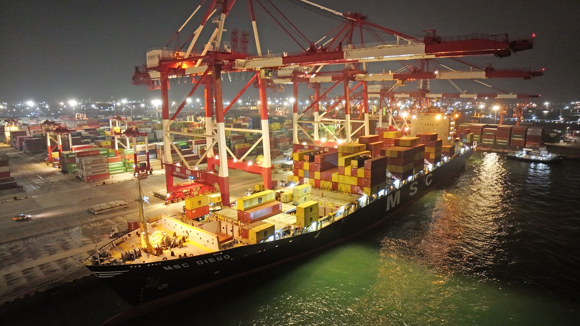 11月7日18:00,伴随悠长的汽笛声,地中海航运(MSC)全新推出的SAMBAR航线(地中海东南亚航线)首班船舶——“地中海迪亚哥”轮顺利靠泊山东港口青岛港前湾集装箱码头,将满载化工品、机电产品及新鲜蔬果等物资,直航越南、泰国、马来西亚等国家。这标志着青岛港正式开通东南亚直达航线,构建起“中国北方-东南亚”的直连物流新通道。至此,青岛港今年新增集装箱外贸航线已达17条,彰显了东北亚国际航运枢纽的强大磁吸力。
