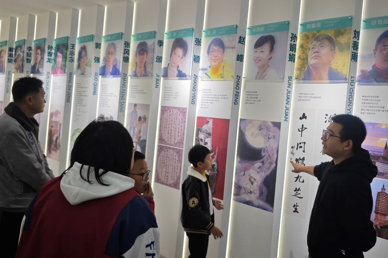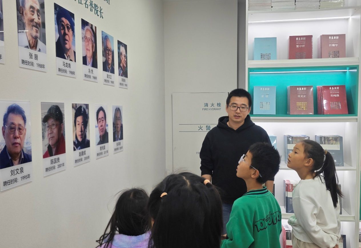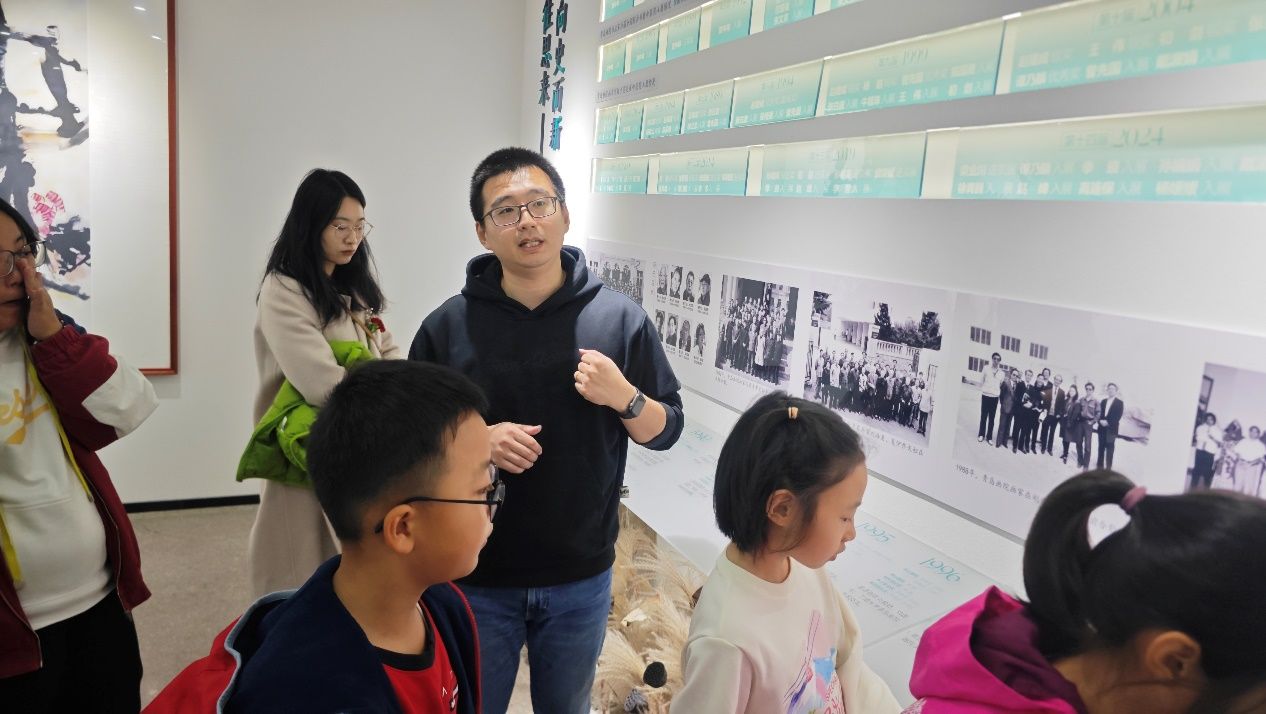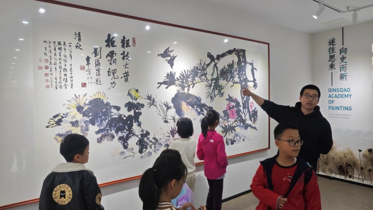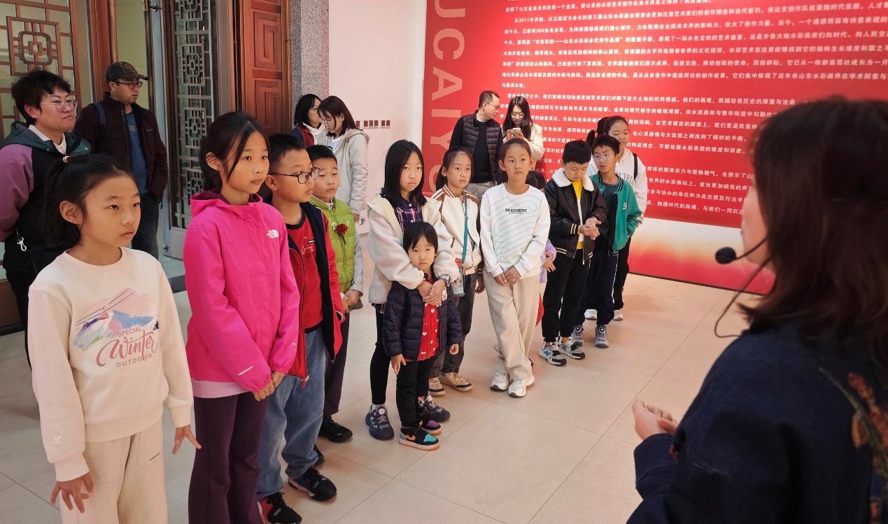 随后,小记者们在山东省青年书协理事、山东省青年书协学术委员会副秘书长、青岛市书协理事丁磊老师的带领下参观了青岛画院历史陈列馆。在陈列馆介绍中,丁磊老师提到,青岛画院作为青岛文化领域的学术名片,四十余年来推出了一大批闻名全国的艺术名家,共有39位艺术名家成为画院的专职书画家。目前,在职画家均在全国各级美协、书协中担任重要职务。众多画家斩获泰山文艺奖,在全国美展、书展中多次获奖。小记者们认真聆听记录、踊跃提问,对画院历史与成就满怀好奇。