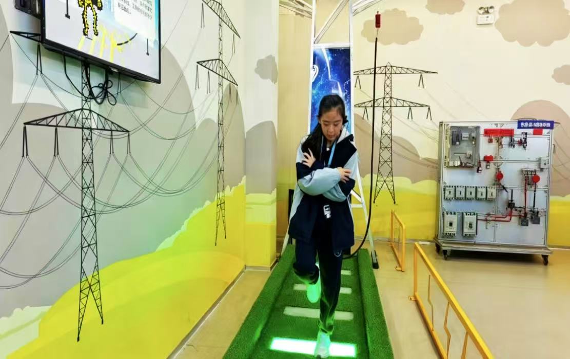 活动现场还模拟了断落电线的场景。安全导师讲解并示范“跨步电压逃生”的正确自救动作——包括“单腿跳跃撤离”与小步幅“挪移”出危险区域等方法,帮助学生在实操中将书本知识转化为扎实的肌肉记忆,提升应急反应能力。
