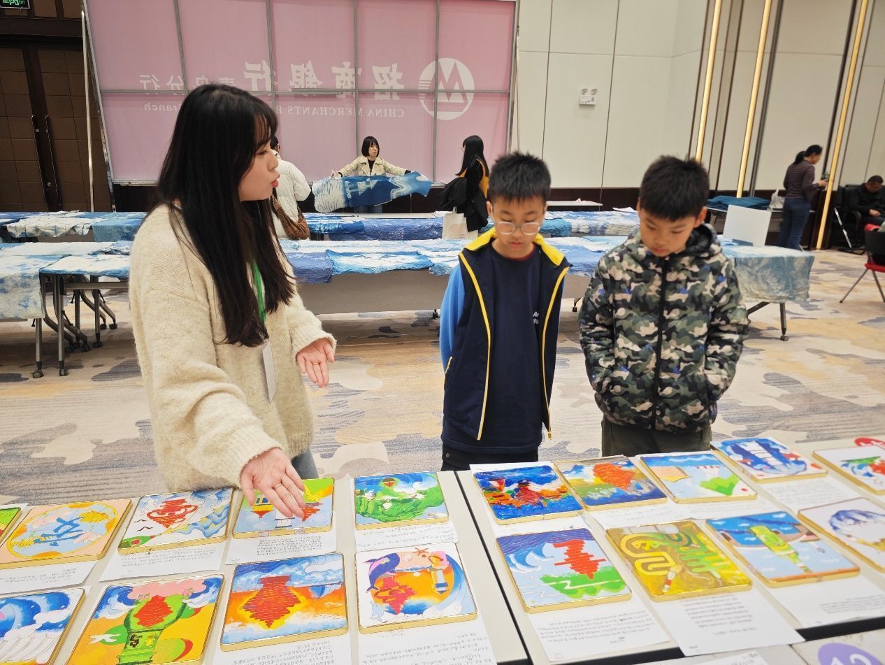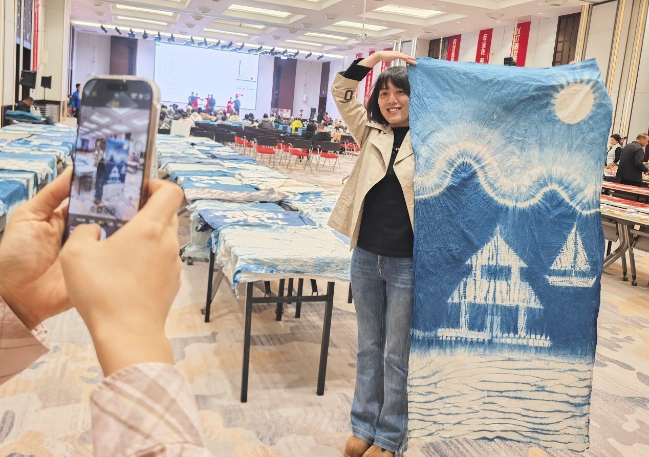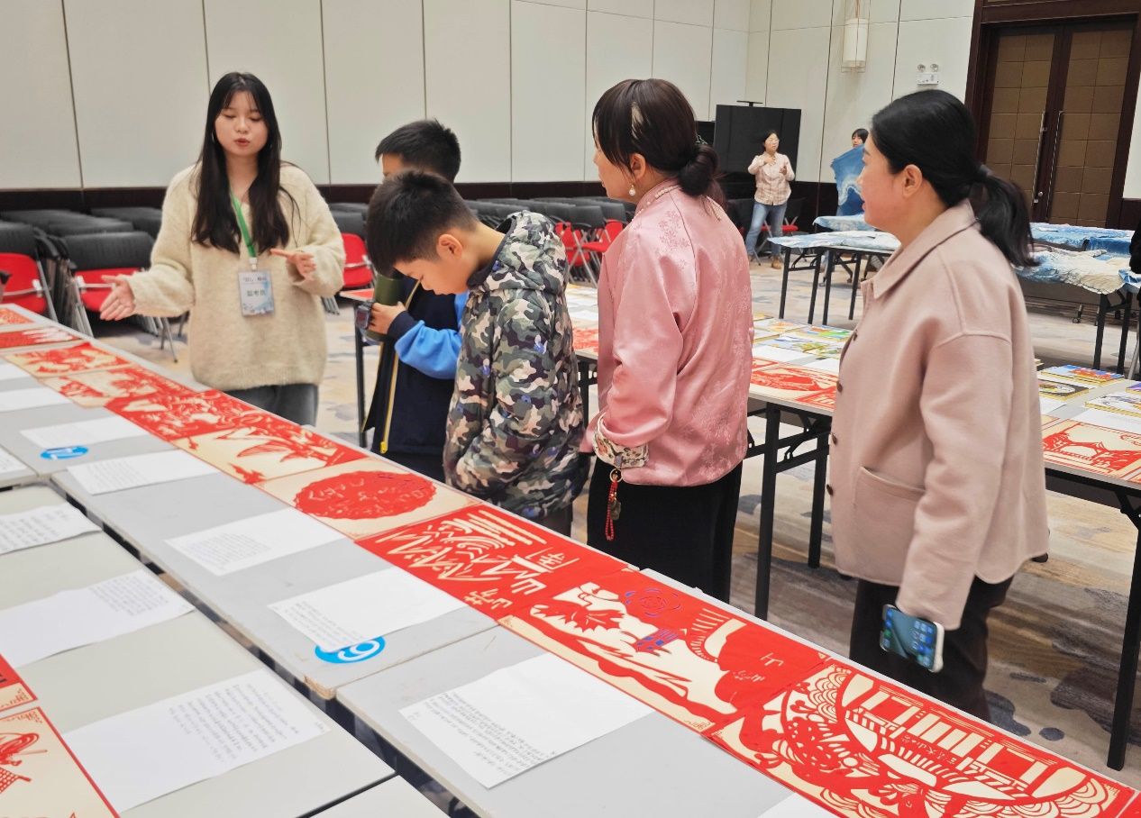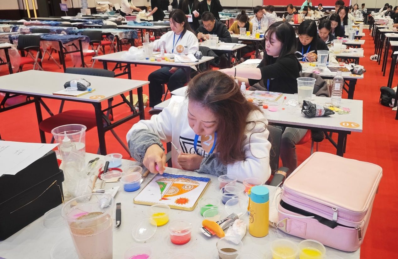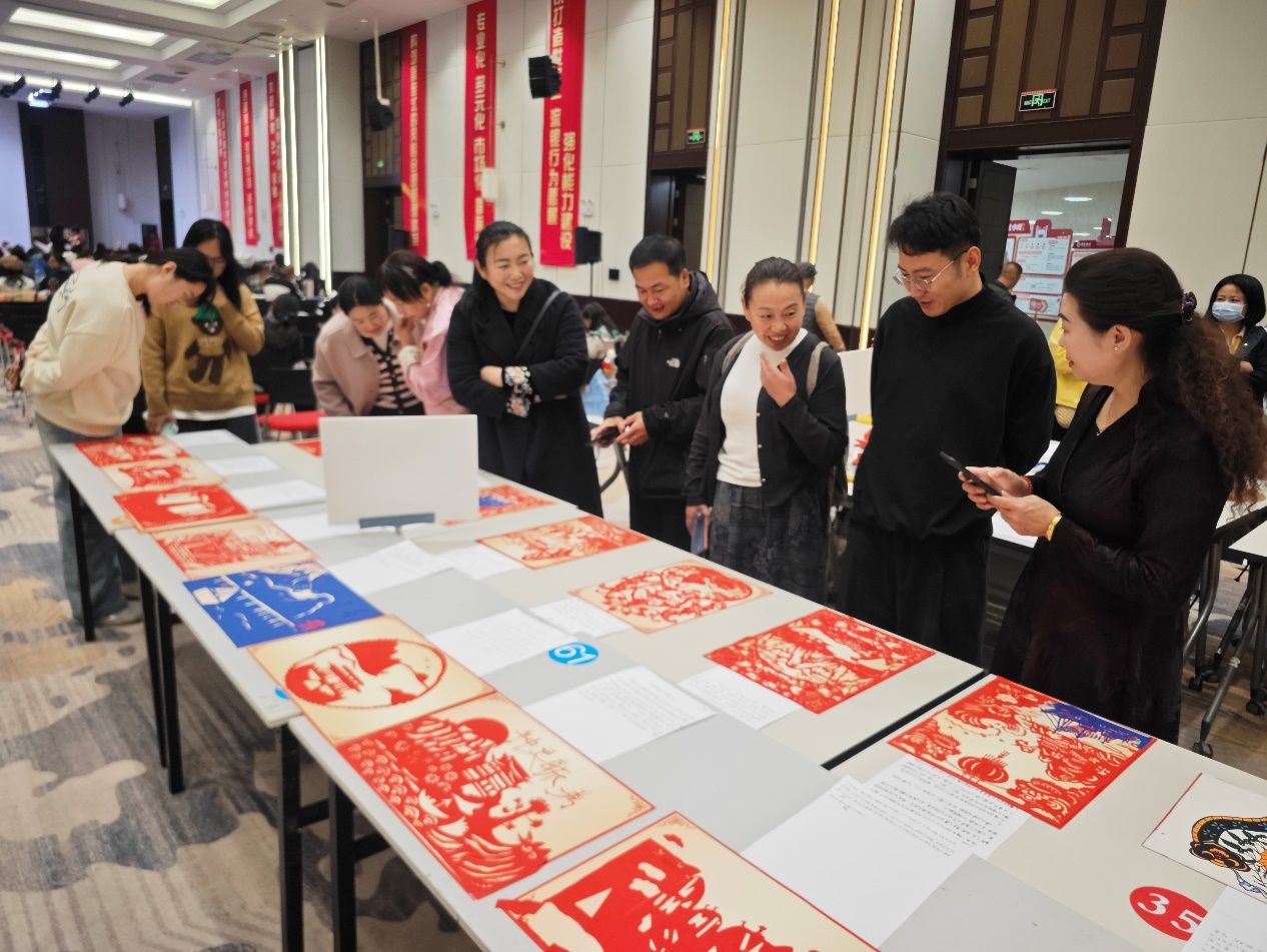 织造印染扎染技艺展示区里,蓝白相间的扎染布料呈现出独特的晕染效果,每一件都独一无二,不少市民忍不住伸出手指轻轻触摸,感受布料上自然流淌的纹理;剪刻纸技艺赛项的作品以细腻刀法、丰富图案展现传统工艺精妙,市民们驻足凝视,解读着作品中蕴含的文化内涵;珐琅画技艺赛项的作品色彩绚丽、质感细腻,金属与釉料的完美融合让市民们深深折服,纷纷称赞传统工艺的神奇魅力。
