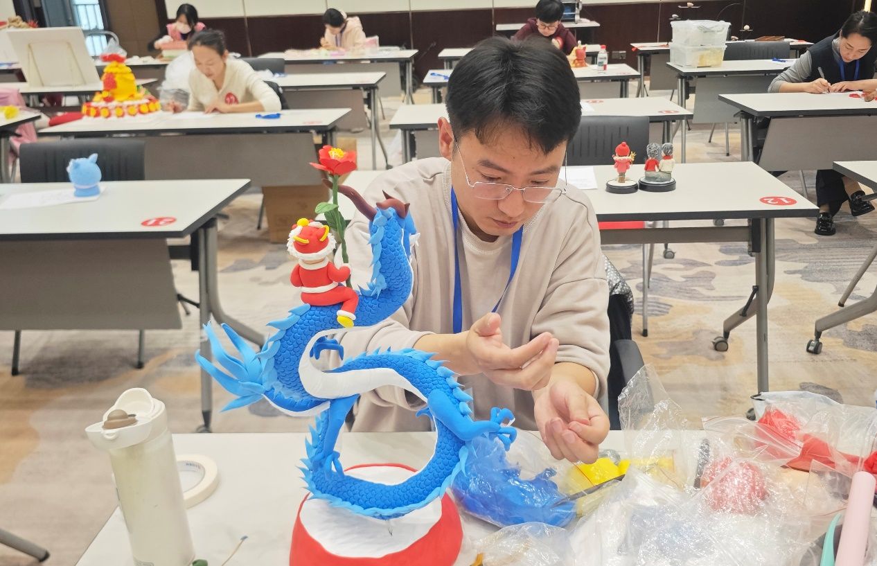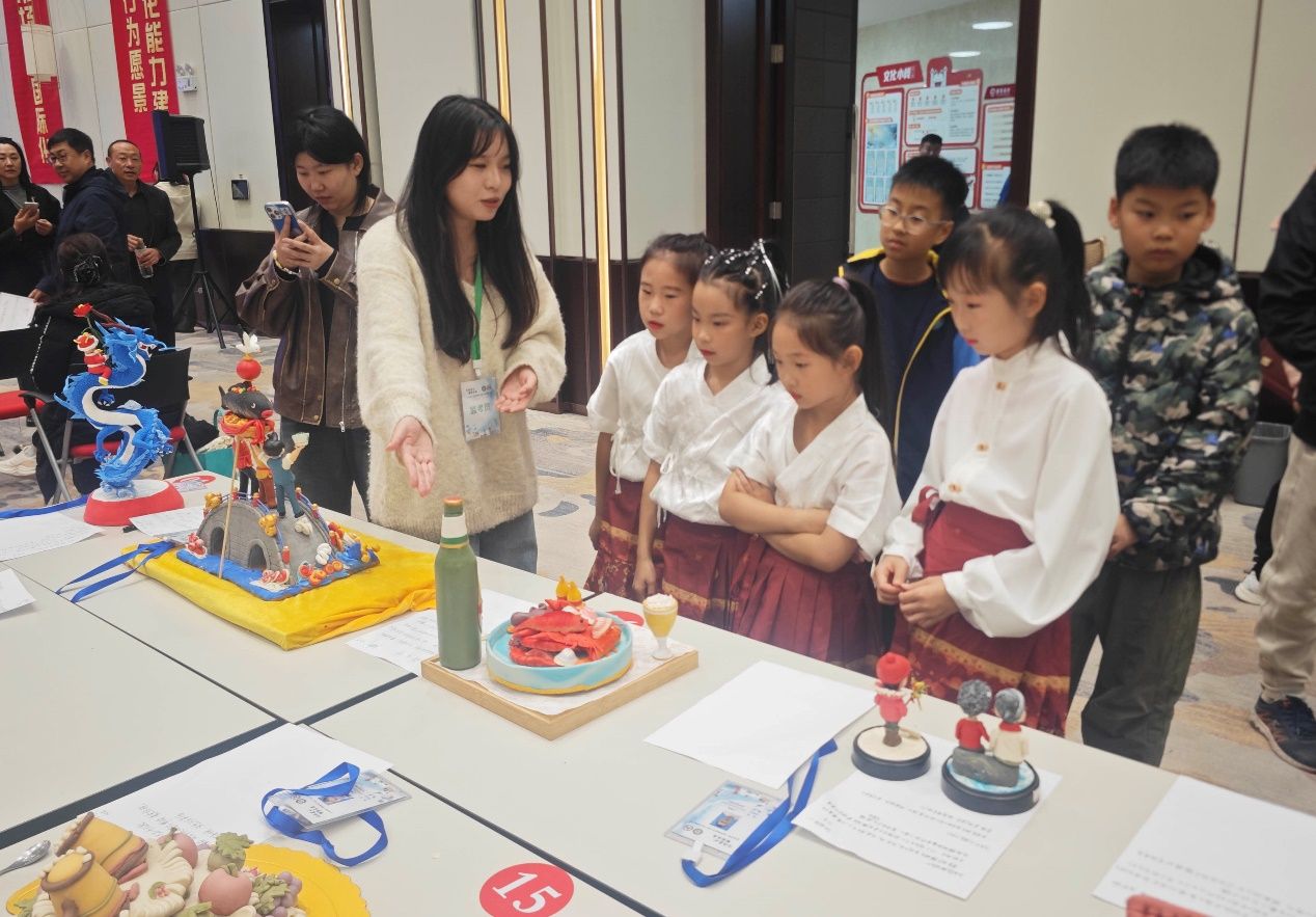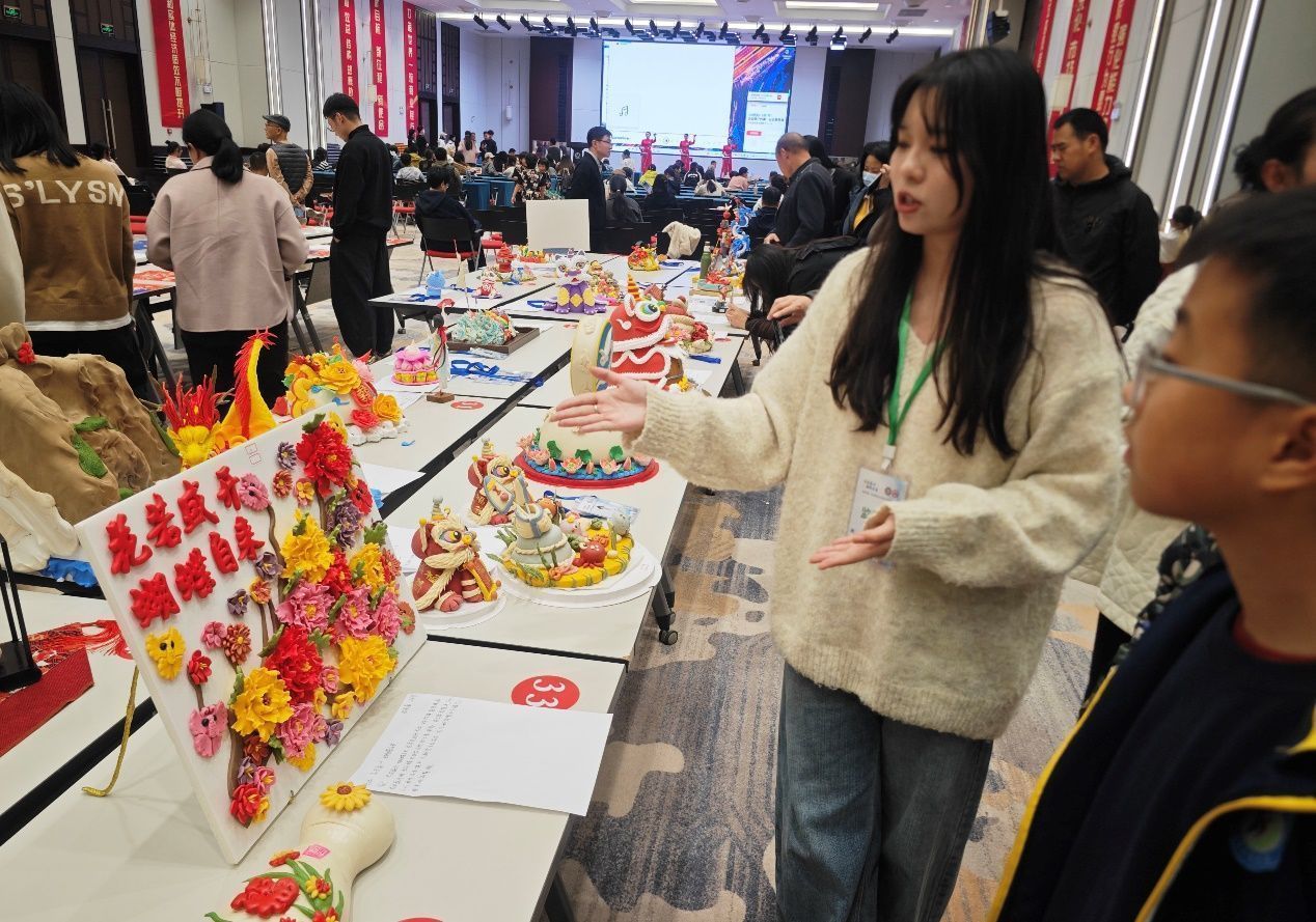 现场的非遗技艺作品展区挤满了驻足观赏的市民。在花饽饽制作赛项展示区,一个个造型精美、色彩鲜艳的花饽饽栩栩如生,龙凤呈祥的吉祥寓意、憨态可掬的生肖造型,搭配细腻纹路与饱满形态,让大人孩子纷纷驻足惊叹。不少市民拿出手机拍照留念,还有人主动向现场工作人员请教制作技巧,“这花饽饽做得也太精致了,不光好看,还满是吉祥寓意,真想学着做一个。”一位带着孩子的市民感慨道。