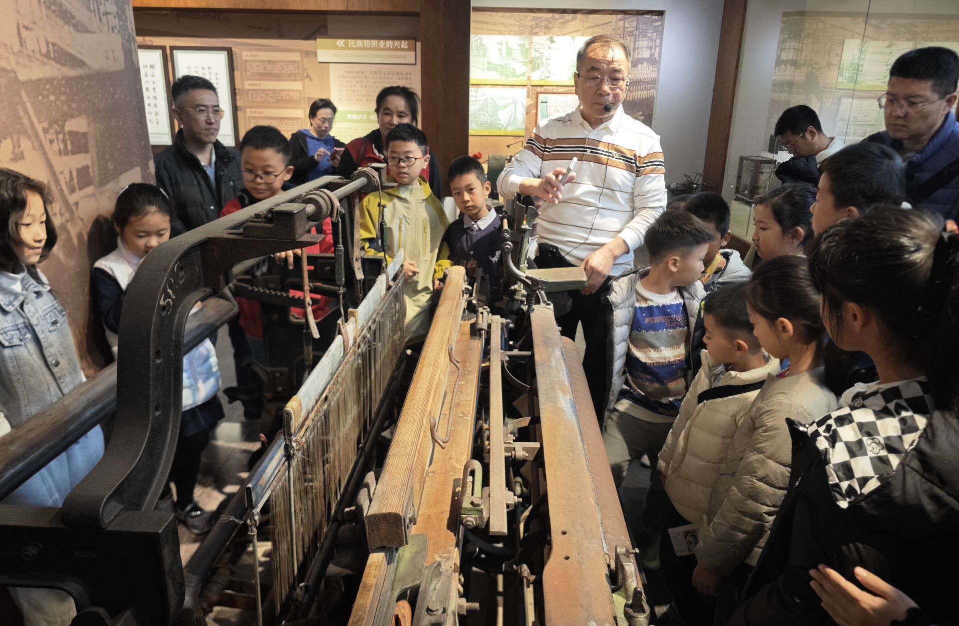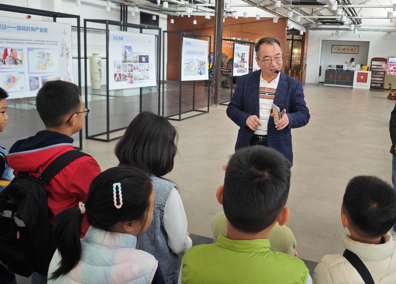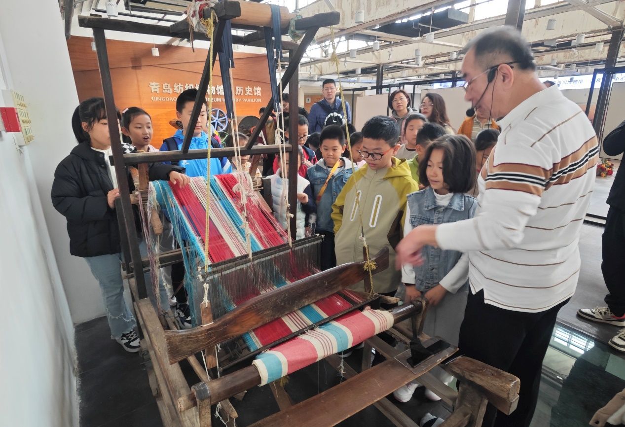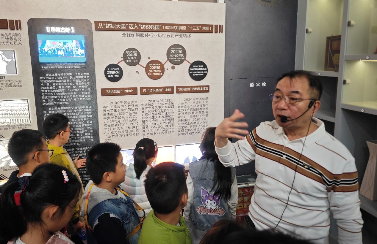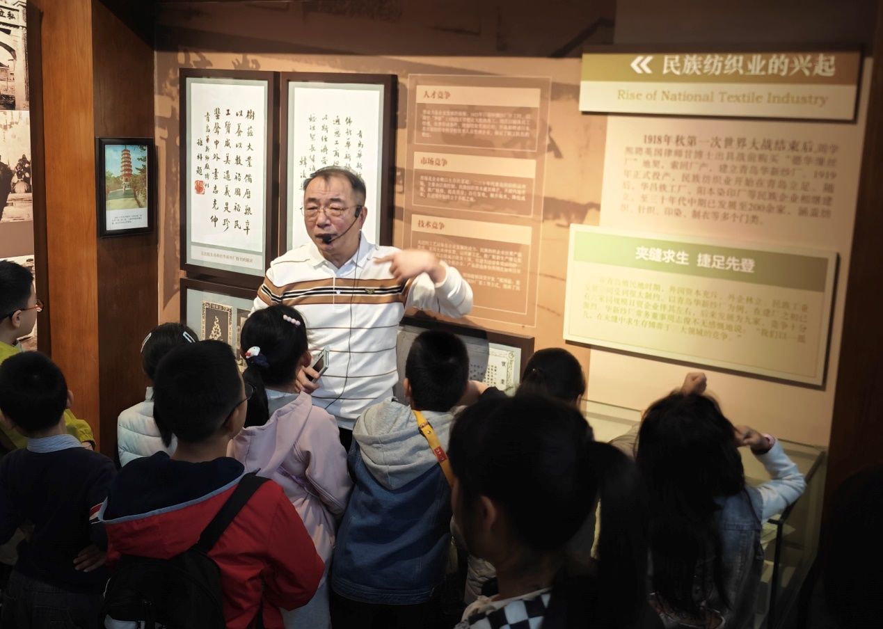 青岛纺织博物馆馆长王雷为小记者进行讲解。
