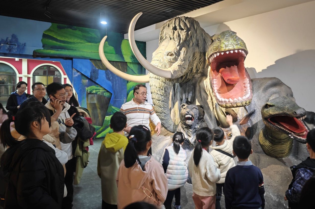 随后,小记者走进“好奇世界・纤维科技馆”,从“工业历史”切换到“科技前沿”。作为全球纤维种类最齐全的专业性场馆之一,这里以“纤维从哪里来,到哪里去”为主题,让小记者重新认识这一“生活必需品”。王雷馆长细致讲解纤维分类:动物纤维中,羊毛保暖有弹性、蚕丝光滑柔软;植物纤维里,棉花吸湿透气、麻纤维凉爽耐磨;矿物纤维如石棉,曾在建筑与工业领域发挥重要作用。最令人震撼的是嫦娥六号登月国旗的故事——这面国旗核心材料含62%玄武岩,经1600℃高温熔融拉制成超细纤维,科研团队攻克多项国际难题,才使其能在月背极端环境中成功展开。“原来衣服里的纤维还能‘上太空’!”小记者的惊叹声,充满了对科技的向往。