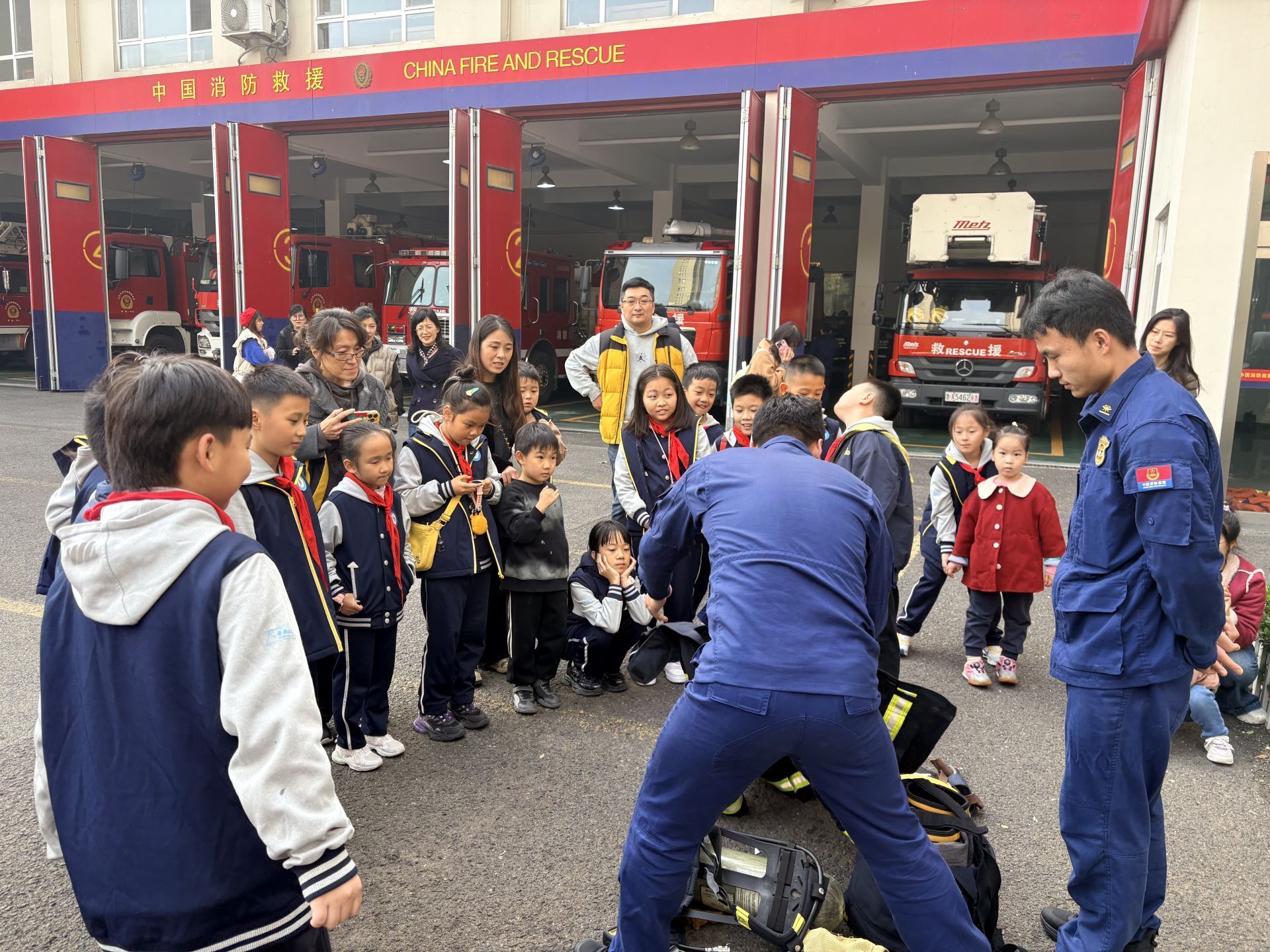 在全国第34个消防日到来之际,为切实提高学生的消防安全意识和自防自救能力,11月9日,青岛镇江路小学2023级14班向日葵中队走进青岛市消防救援支队特勤大队一站,开展了一场生动而深刻的消防安全教育实践活动,与消防员来了一次“零距离”接触。