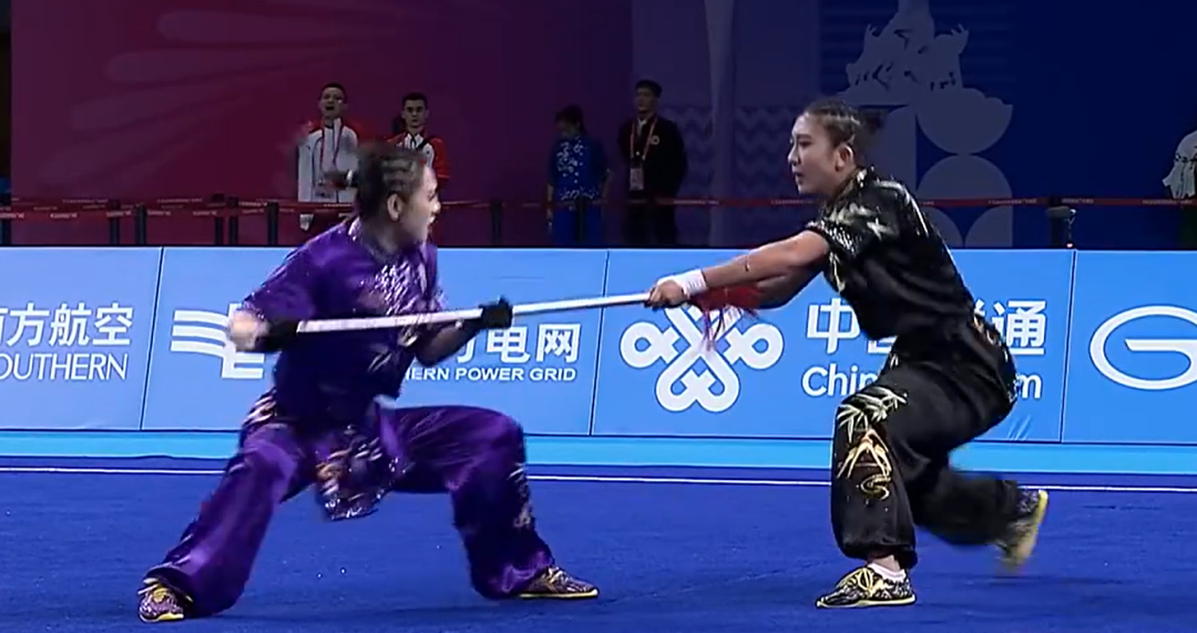 此次全运会决赛,面对全国各地的顶尖高手,于文珂、孙守诺沉着应战。赛场上,她们身法灵动、刚柔并济,一招一式尽显武术套路的刚健之美与韵律之妙,无论是单人技术展示还是团队协同配合,都展现出高超的竞技水平和良好的精神风貌,最终以总分优势脱颖而出,将冠军奖杯收入囊中。