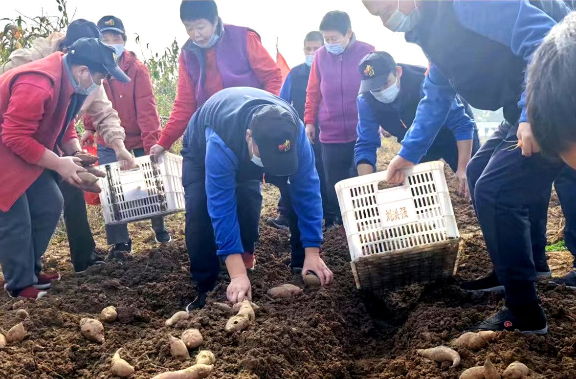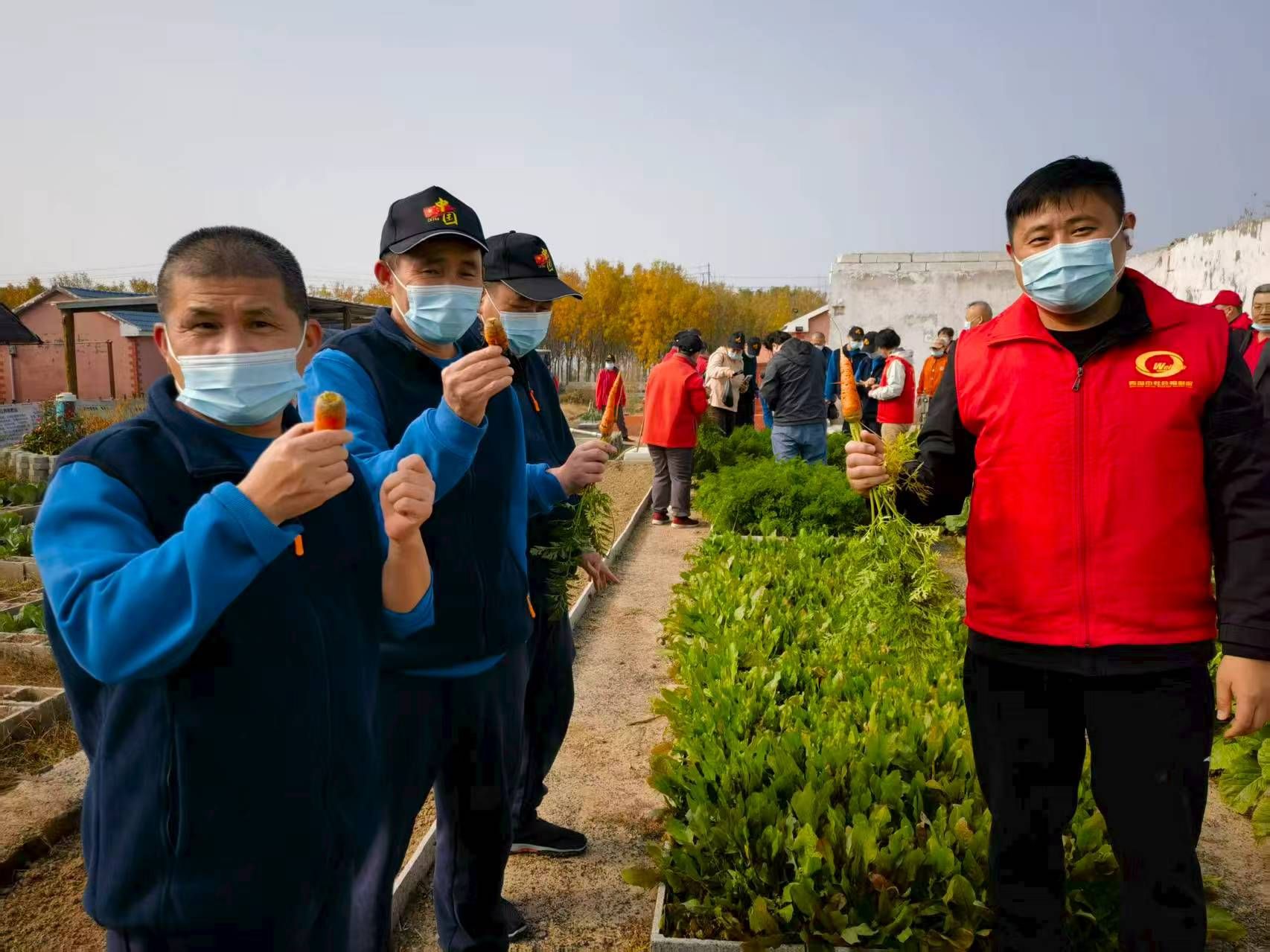 活动现场暖流涌动。生态果蔬区内,农场向导引领大家穿行于田垄之间,细致讲解白菜、萝卜等作物的生长过程与种植知识。供养对象俯身轻抚青翠菜叶,感知泥土的滋养与自然的馈赠。地瓜采收环节更是气氛热烈。工作人员示范如何“顺藤摸瓜”、轻挖慢取,供养对象们纷纷卷起袖子、手执小铲,弯腰忙碌,虽然双手沾满泥土,笑容却格外灿烂,每一颗收获的地瓜都承载着满满的成就。