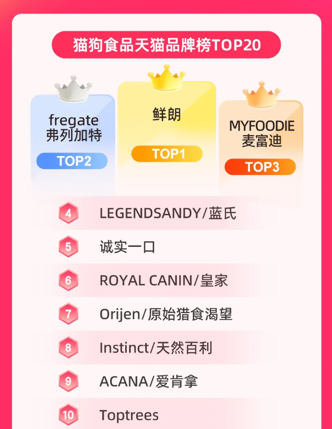 宠物电商每年“双十一”都是“神仙打架”,今年在淘天预售爆单的品牌中,“国货”含量极高。从主粮到零食,从医药到用品,几乎每个子类目都在见证国产品牌的跃升。
