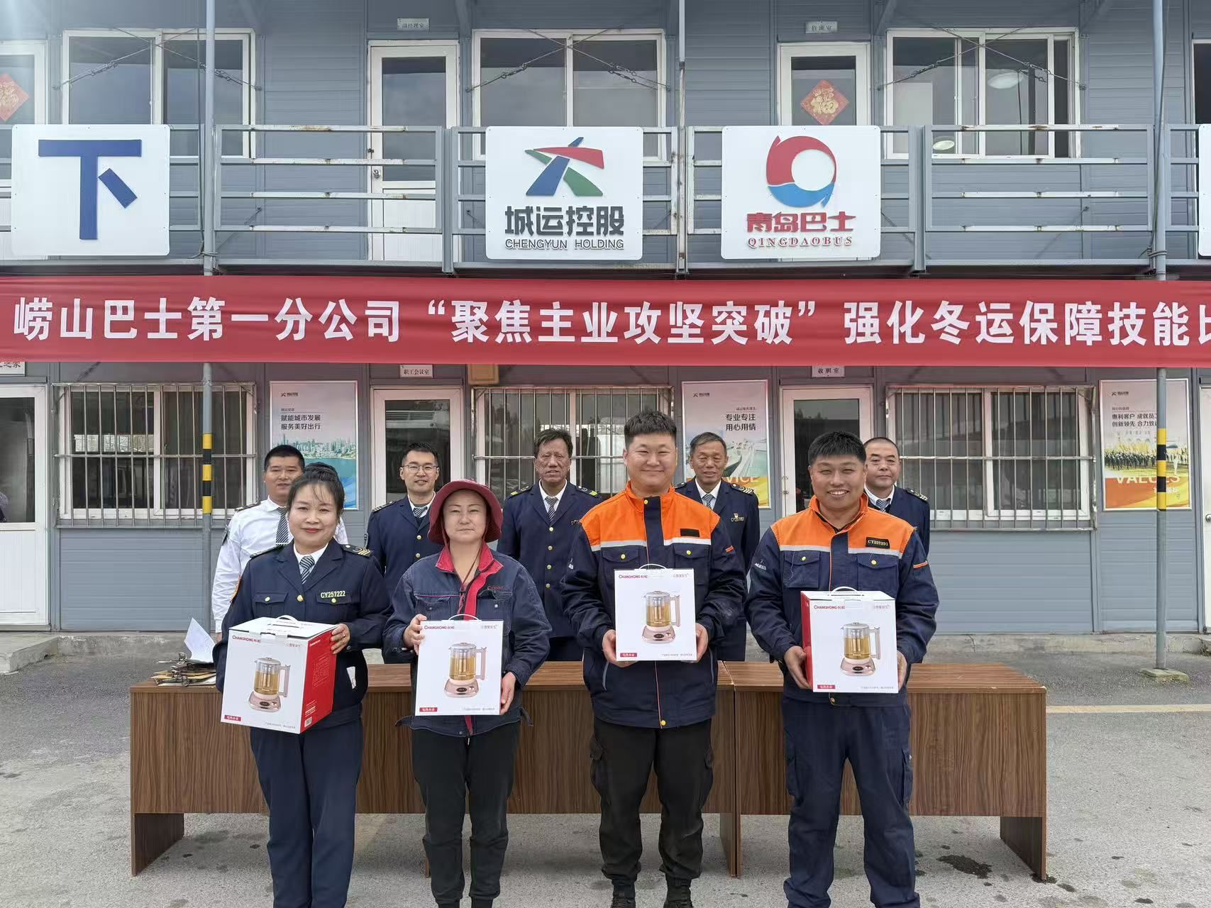 经过激烈角逐,各项比赛项目的优胜者终于揭晓。公司领导和评委向他们颁发了奖项,并给予了高度评价,称赞他们的专业技能和积极向上的职业精神。崂山巴士第一分公司党支部书记赵志生表示:“此次冬运保障技能比武不仅是对员工技能的考核,也是一次实战演练,充分检验了大家在实际工作中的应对能力和细节执行力。通过比赛,不仅提升了员工的操作技能,也增强了他们对冬季运营中可能遇到困难的预判能力。接下来,我们将继续强化冬季安全生产的培训,确保每一位员工都能熟练掌握冬季操作技巧,保障市民在这个冬季安全、温暖地出行。”