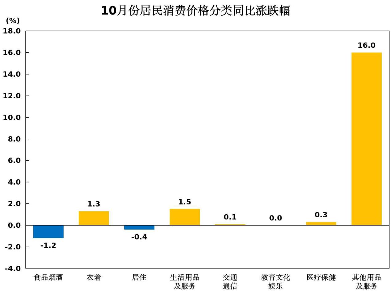 工业消费品价格同比上涨1.6%,环比上涨0.4%。