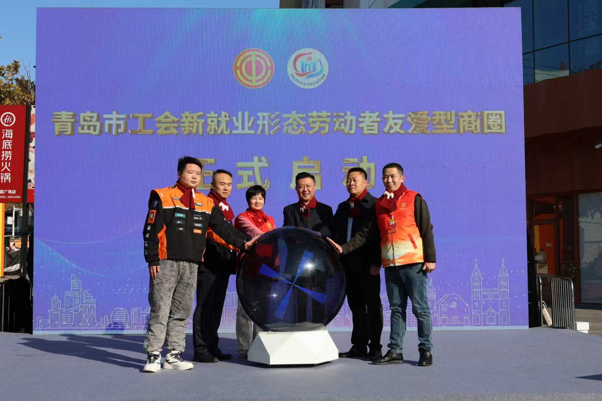 11月10日上午,青岛市总工会“青岛市工会新就业形态劳动者友爱型商圈”正式启动,市南区金茂湾购物中心、市北区悦荟广场双点联动,共同拉开全市工会“友爱型商圈”建设序幕。