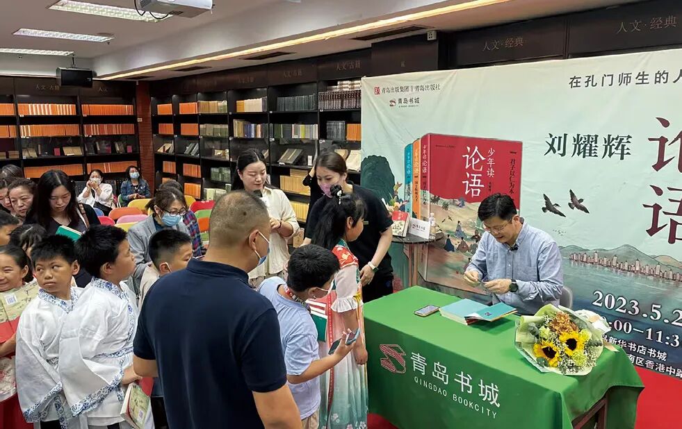 《少年读论语》作者刘耀辉在青岛新华书店书城与小读者们见面。