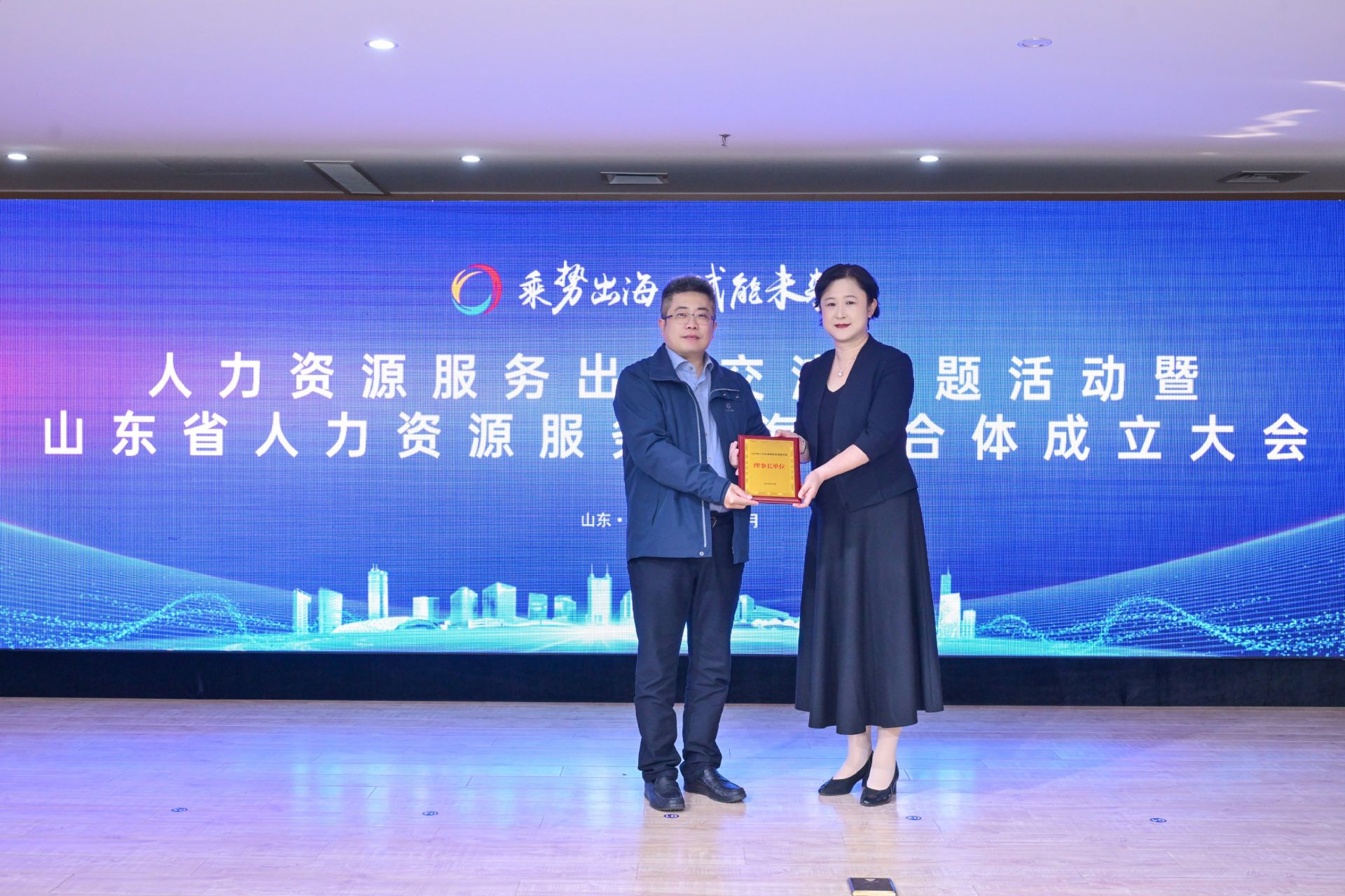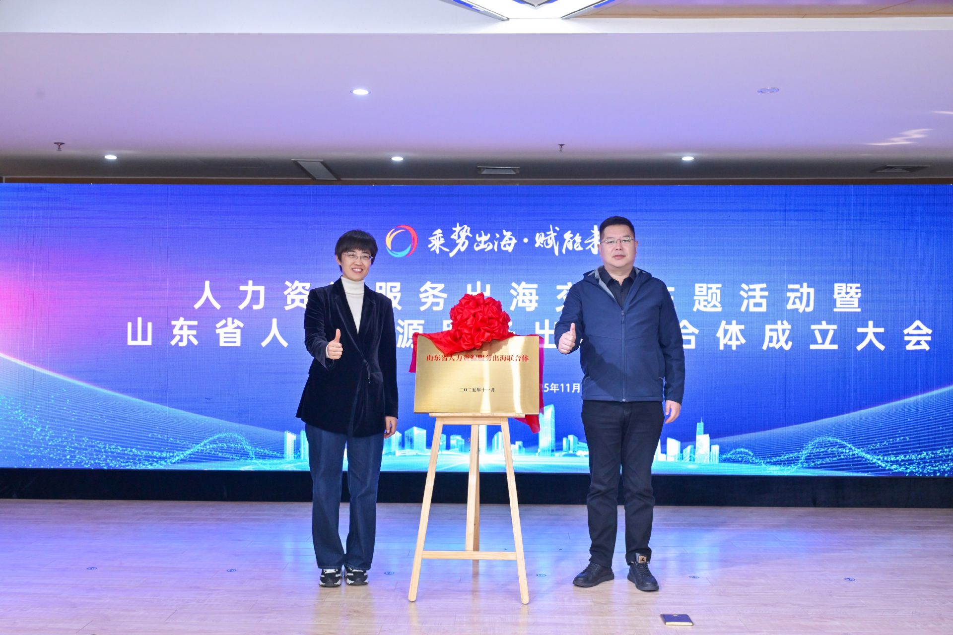 11月13日,山东省人力资源服务出海联合体成立大会举行,全体与会代表集体表决通过了《山东省人力资源服务出海联合体章程》及《选举办法》,并选举产生了首届理事会成员单位。山东省人力资源和社会保障厅人力资源流动管理处二级调研员马莉亚与青岛市人力资源和社会保障局党组成员、副局长董海波共同为联合体揭牌。相关领导为首届理事会成员单位代表授牌,标志着山东省人力资源服务业正式从“单打独斗”迈向“联合舰队”式发展的新阶段。