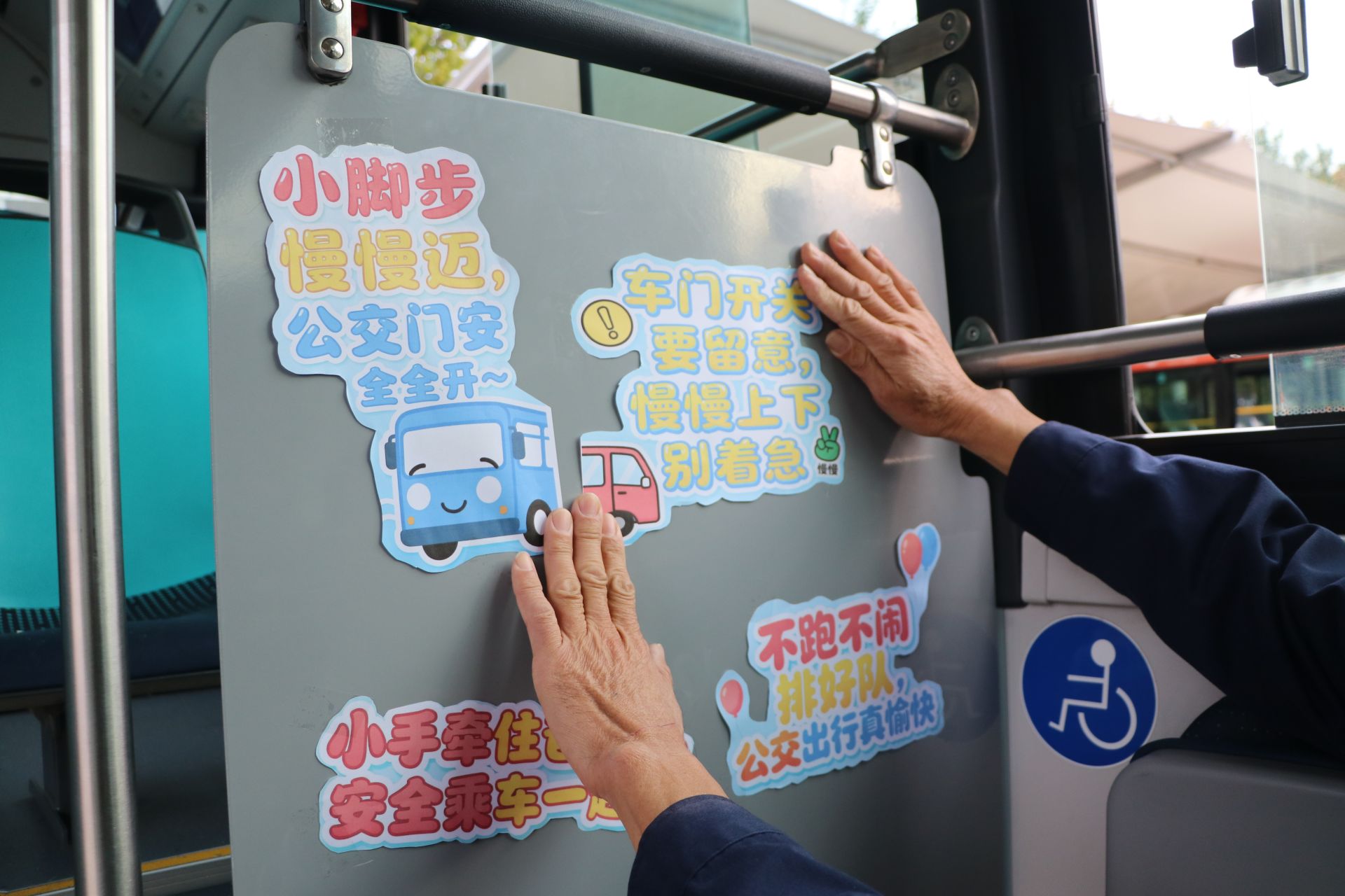 为给特殊孩子们打造专属的温暖体验,郑吉凡精心筹备。他将389路公交车当作传递爱心的载体,开启了一场充满童趣的改造。他在车厢后方孩子们容易留意的位置,逐一贴上活泼温馨乘车提示语,“上车先看脚下坎 安全第一记心间”“不跑不闹排好队 公交出行真愉快”等简洁押韵的话语,搭配着气球、太阳等图案,格外醒目亲切。不仅如此,他还特意用富有童心的小黄鸭挂件装饰车厢,让原本普通的公交车摇身变成了温馨可爱的“移动乐园”,每一处细节都藏着对孩子们的用心。