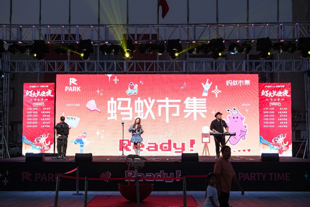 与此同时,外围近20000平方米的“蚂蚁市集”通过网红集装箱、文艺帐篷、露营设施等元素,严选汇聚了全国各地风味美食、匠心文创、非遗传承和音乐Live现场,与服装夜市场形成了完美的消费闭环。