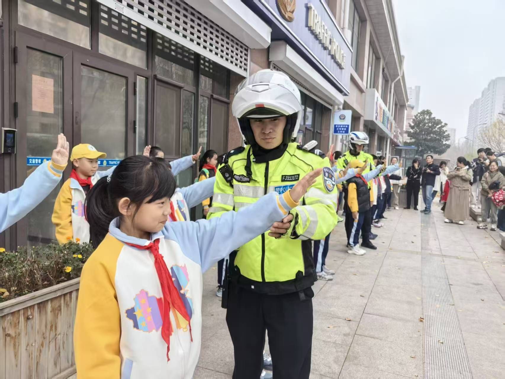 活动现场,李沧交管大队四中队辅警刘学尧、吕存鑫首先为学生们展示了日常执勤的“单警装备”。从警用摩托车的性能,到执法记录仪、对讲机的功能,讲解深入浅出,引发了孩子们的浓厚兴趣。后民警王同善为同学们表演了标准的交通指挥手势,并组织了互动教学。孩子们认真地模仿着每一个停止、直行、转弯的手势,在亲身实践中加深了对交通规则的理解。