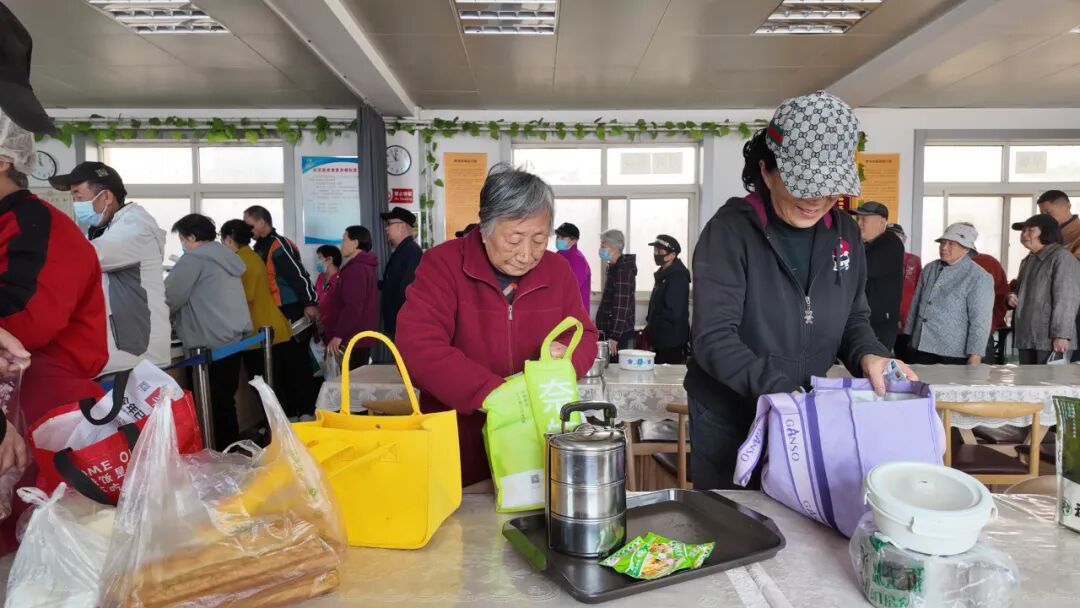 纪云波介绍,食堂的免费粥很受老人们欢迎,天凉了,老人们从山下走上来,打完饭,坐下歇一会,喝上一口热乎的米粥,再往家走,有的老人也会打包一些粥带走。