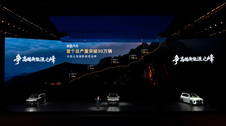 五年稳健发展之上,岚图汽车正在加速夯实其央国企高端新能源第一品牌的行业地位。9月,岚图汽车举行“时代风尚之夜”,岚图泰山迎来全球首秀,向外界展示了岚图汽车强大且高效的产品研发及高端制造能力;10月,岚图汽车正式向香港联合交易所递交主板上市申请,宣告企业资本化进程步入新阶段;11月,岚图汽车第30万辆整车下线,成为首个达成30万辆规模的央国企高端新能源品牌,再次迎来品牌发展里程碑。