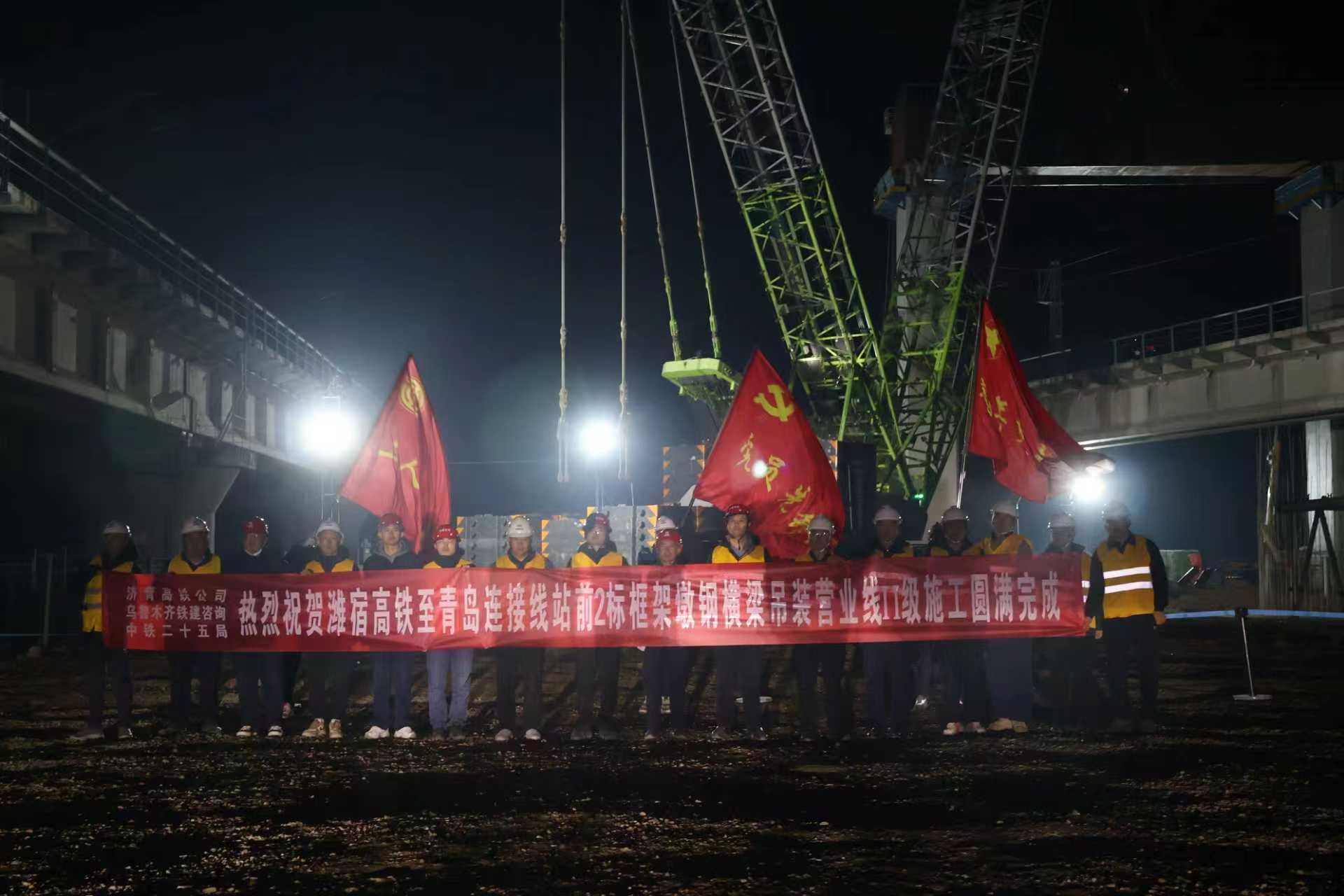 11月20日,潍宿高铁至青岛连接线工程建设迎来重要节点——全线首个上跨既有铁路线的钢横梁顺利完成吊装,成功打通了后续架梁通道,标志着项目关键控制性工程取得阶段性突破,对加快全线施工进度具有重要意义。