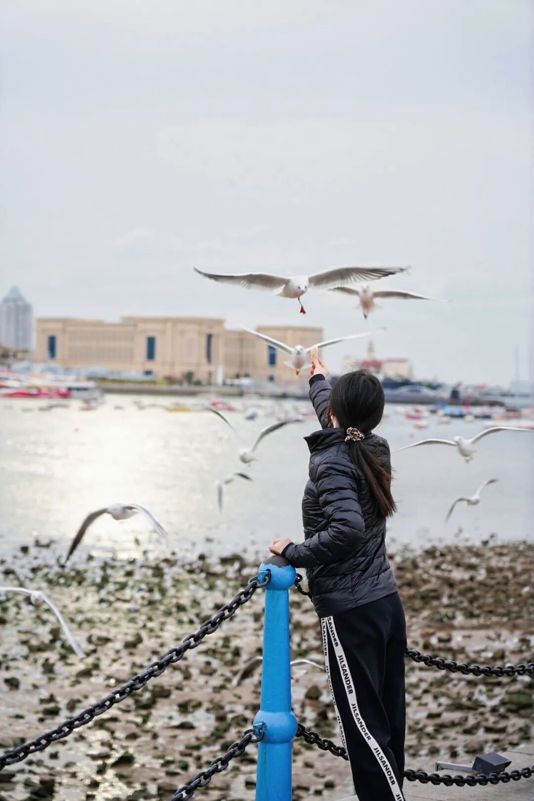 眼下正是鸥群陆续集结的时节,未来几个月,青岛的碧海蓝天间,都将有这些白色精灵的身影。喂海鸥、看海景、逛老城……让咸湿的海风和清脆的鸥鸣,承包你整个冬天的浪漫。