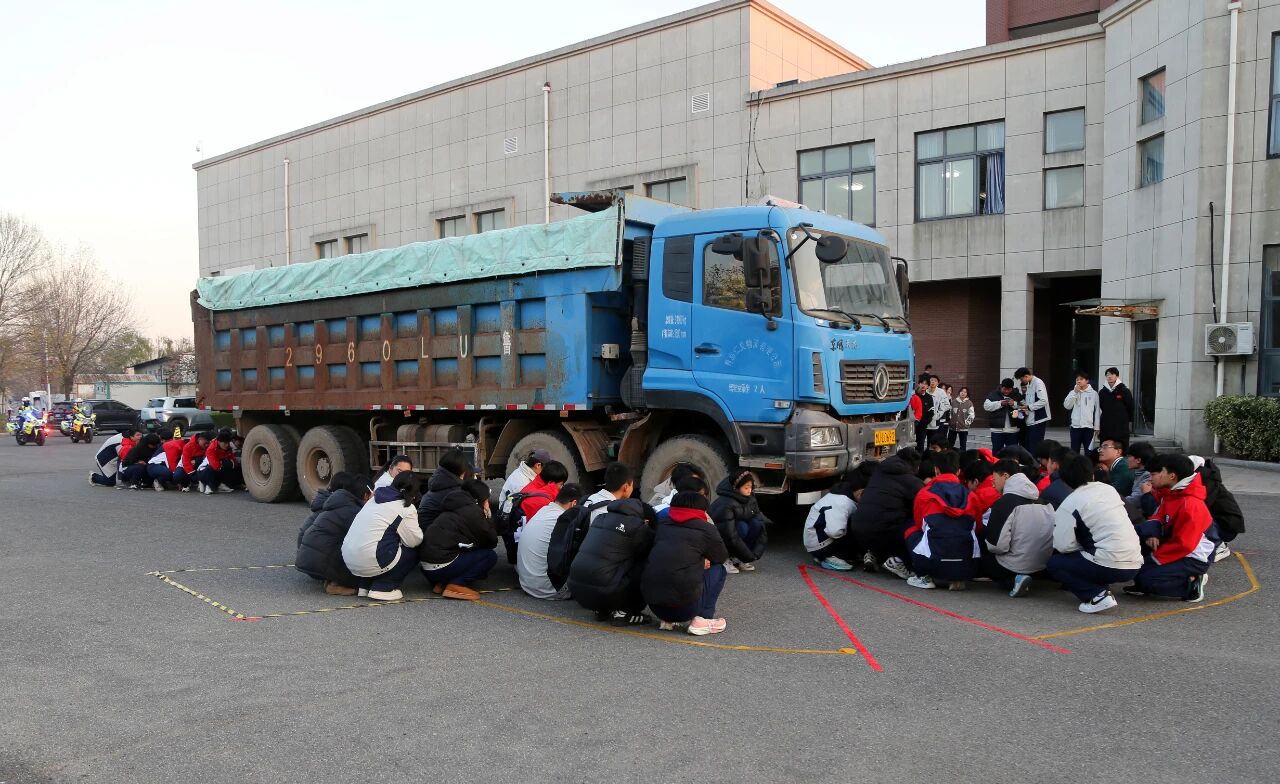 大家走出宣讲课堂,来到户外场地参与了一场寓教于乐的实践活动。民警通过现场实景模拟、互动问答的方式,向同学们说明不戴头盔、不系安全带的危害以及大卡车盲区的安全隐患、相应危险和应对措施,为学生敲响警钟。