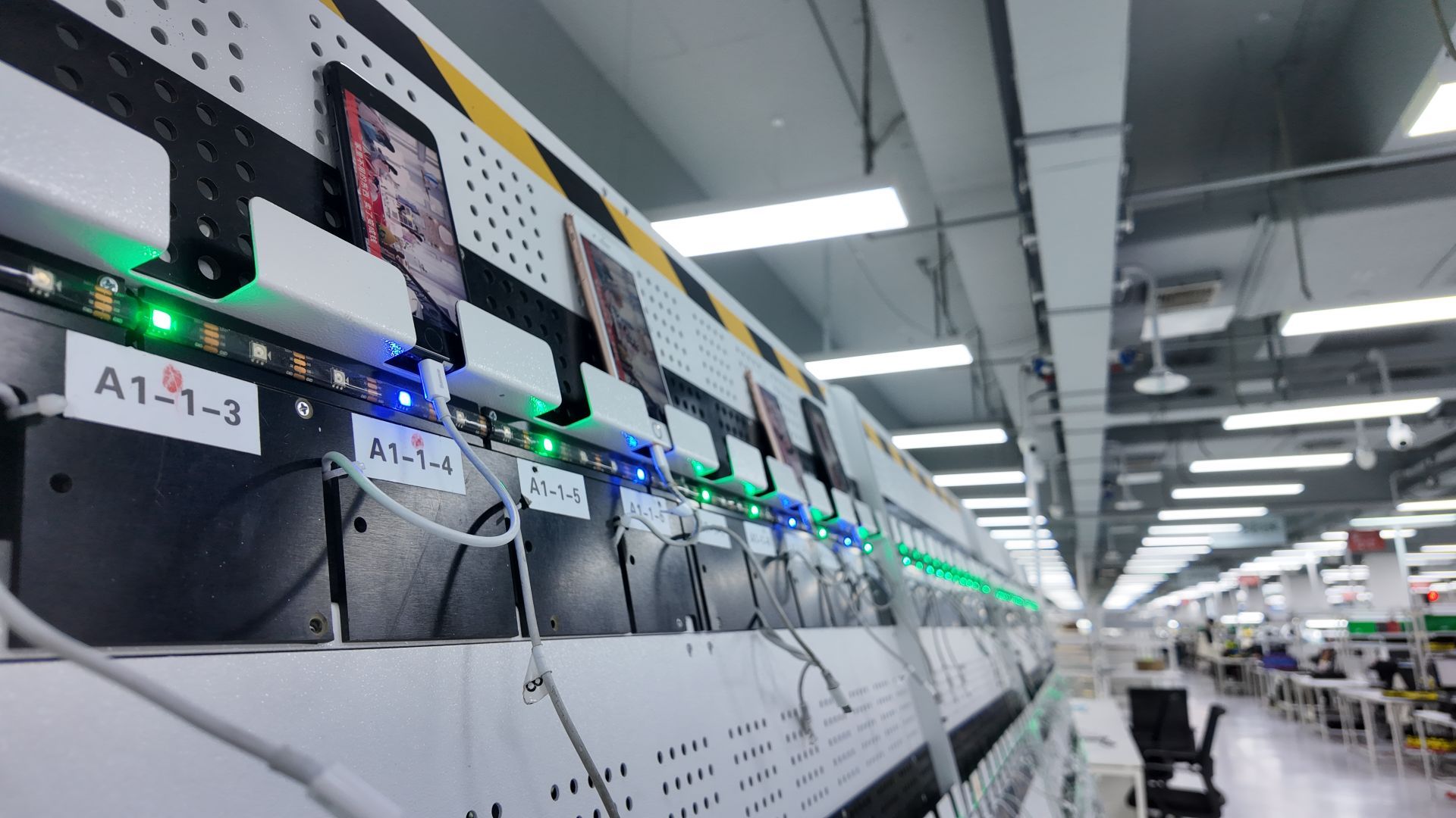 穿过一道安检门,便来到了二楼最核心的仓储区域。发货前,所有检测完成的设备会统一放在特制的货架上,拣货员可根据系统的提示信息快速找到指定物品。