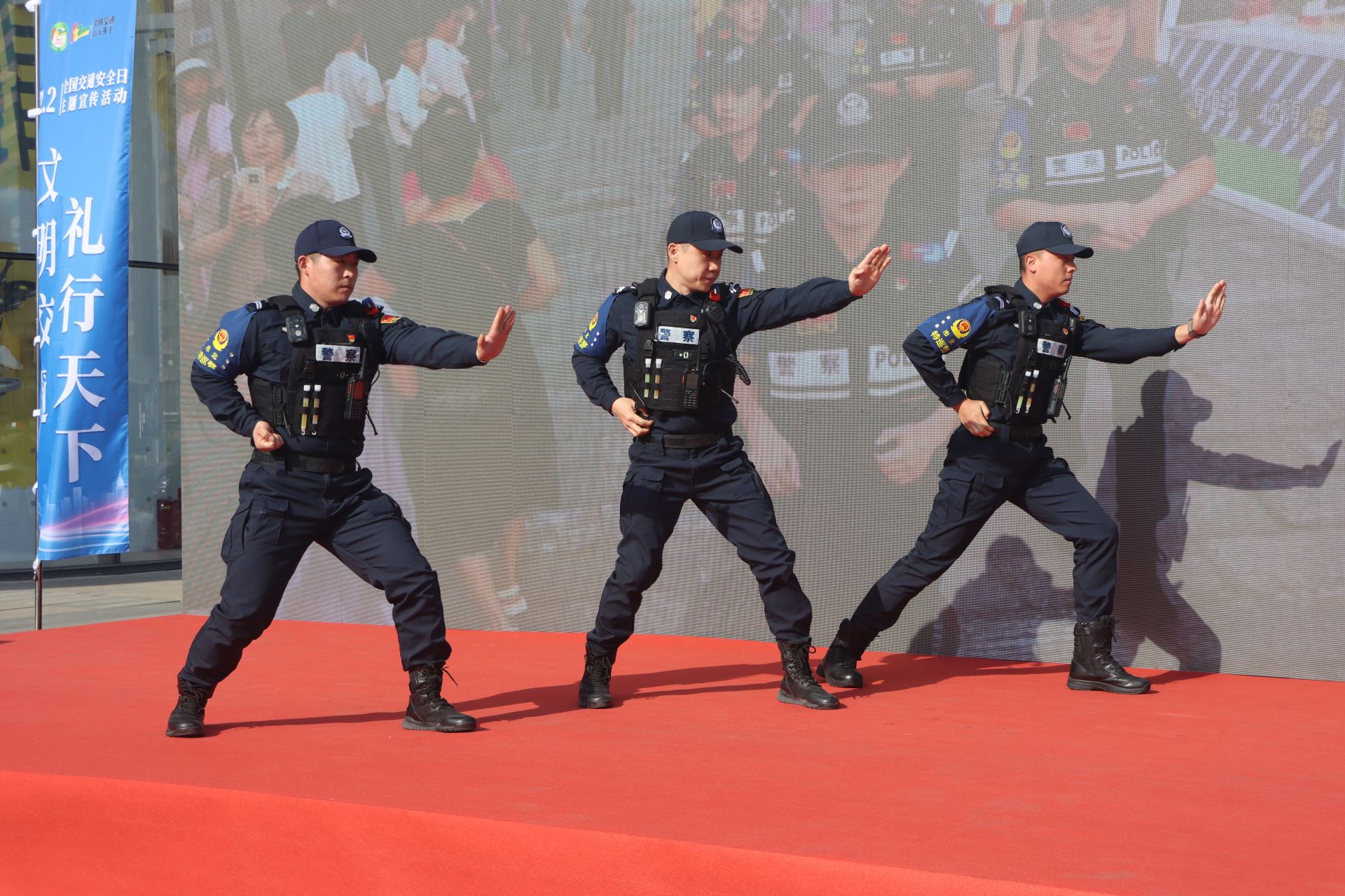 活动现场凸显了“融合”特色。活动伊始,由交警与派出所民警共同出镜拍摄的平安主题宣传片迅速凝聚了现场人气。后由市北交管大队与市北区第二实验小学共同编排的交通安全情景剧《你的平安,我来守护》精彩上演,生动揭示了日常出行风险。由市北区文明办选送的快板节目《飙出来的祸》节奏明快、寓教于乐,以新颖形式倡导文明出行理念,赢得阵阵掌声。青鸾特巡队带来的警体拳表演将现场气氛推向高潮,队员们动作整齐划一、气势如虹,充分展现了公安队伍的过硬素质和良好形象,赢得了现场观众的满堂喝彩。