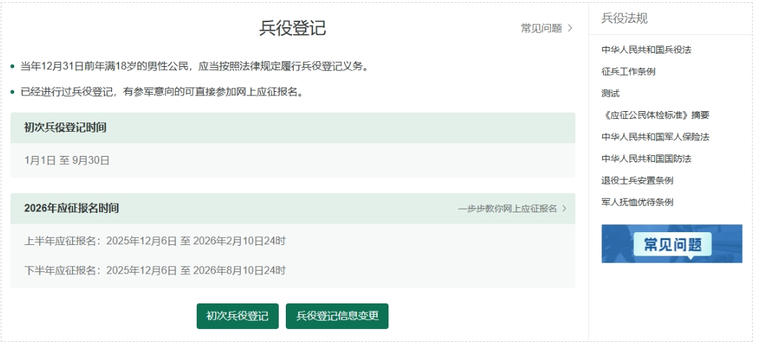 2026年男兵应征报名通道今天(12月6日)正式开启。