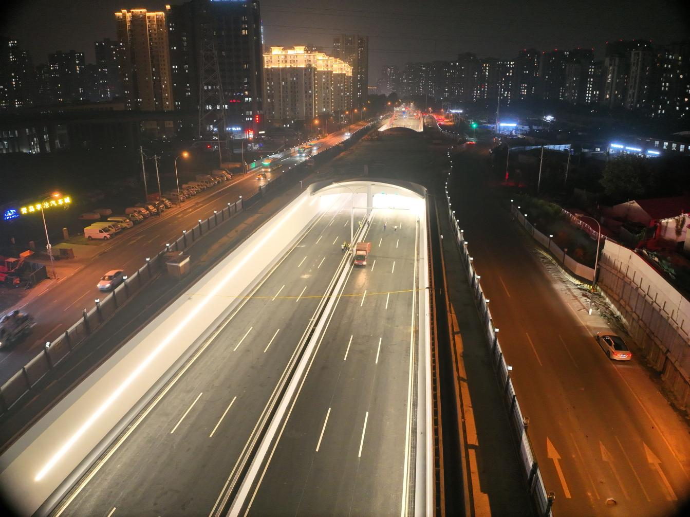 与沈海高速的区域联动功能相呼应,唐山路快速路工程聚焦城市内部交通优化。项目西起重庆路、东至天水路,全长约3公里,总投资32亿元。主线采用双向六车道一级公路兼城市快速路标准,设计时速80公里,通过匝道与下穿地道,构建起高效互联的立体交通网络,建成后将有效分流区域车流,极大缓解周边道路拥堵。目前,项目隧道装饰与机电安装工程已进入全面攻坚与系统调试阶段,面对多工种交叉作业的复杂局面,施工现场实行安全提级管理,强化协同调度与成品保护,确保一次成优。
