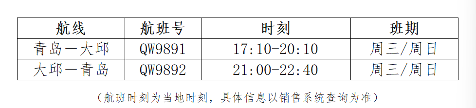 此次新开的青岛=大邱航线计划于每周三、周日执飞,单程仅需2小时左右。开航初期,单程经济舱含税票价最低仅需550元起,极具高性价比。具体的航班时刻信息如下: