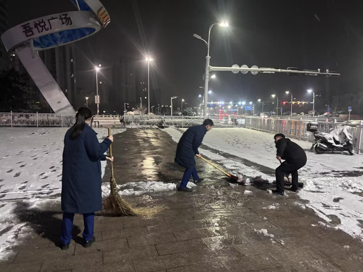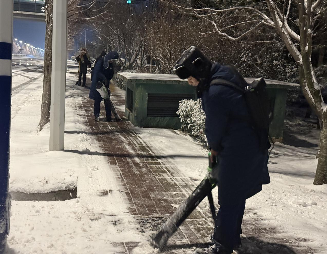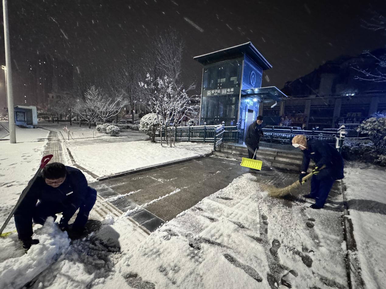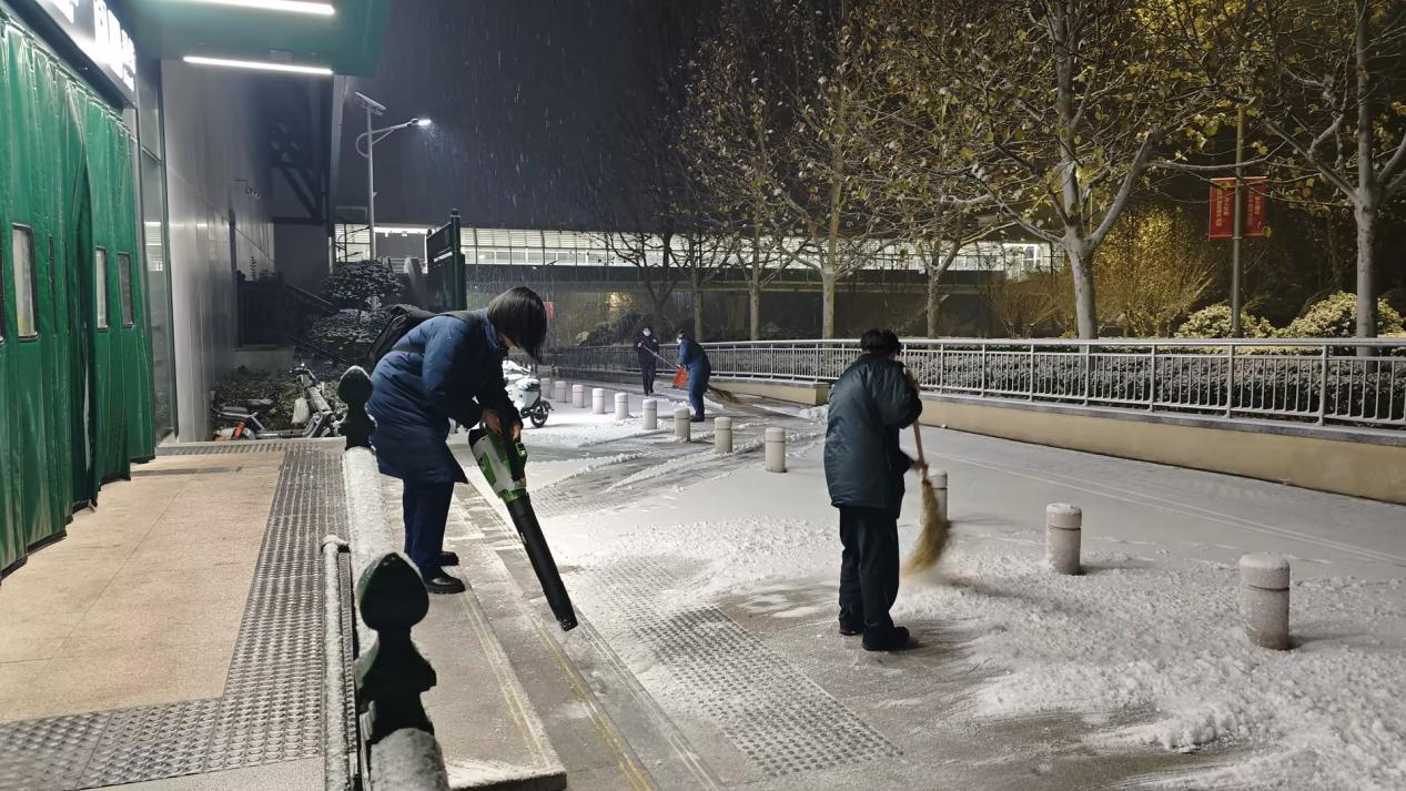 洪山坡(妇儿医院)站以雪为令,连夜清扫积雪。