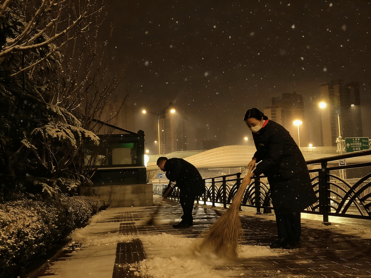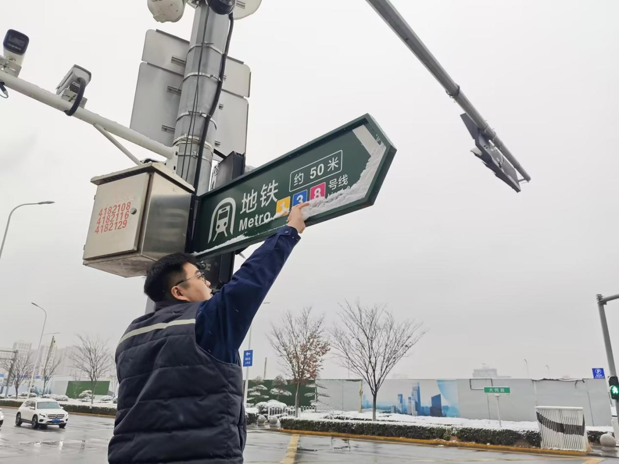 地铁建设者们在保障工地及地铁站周边安全的基础上,主动扩大清扫范围,协助清理周边街道、人行道等区域。他们不畏冰寒、不懈坚守,在寒冬中用实际行动温暖着这座城。