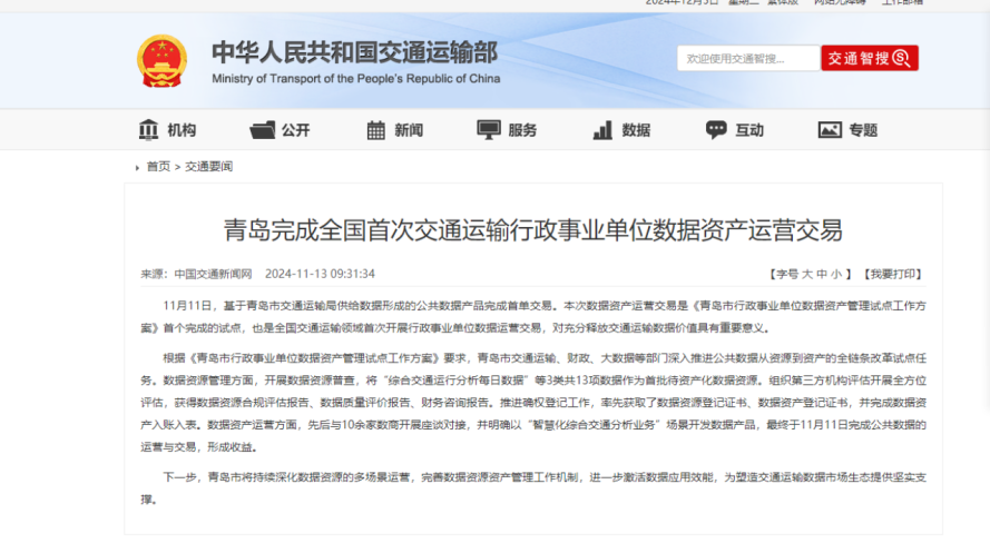 数字交通作为数字经济的重要领域,是推进交通运输行业高质量发展的核心内容之一。近年来,青岛市深入践行交通强国战略,以智慧交通这一交通强国试点任务为抓手,在全省率先创建泛在互联、全息感知、全优服务的交通运输一体化应用“云脑”平台,也成为全国唯一的“城市级”综合交通数据中心,极大提升了全市交通安全化、高效化、便捷化水平。