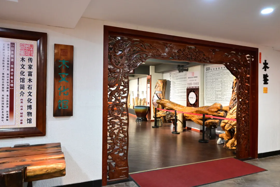 据平度市传家富木石文化博物馆负责人杜群利介绍,博物馆分为珍木文化、宝玉石文化两大主题展厅、观众休闲观赏区和文创区。珍木文化厅系统展示全球名木标本和我国传统木工艺沿革;宝玉石文化厅展出世界天然宝玉石矿物标本。观众休闲观赏区展示各种题材的木雕艺术作品,尤以《红楼梦》等经典为题材创作的大型根雕艺术作品最为瞩目。大型古木、阴沉木及天然奇石相互映衬,营造出“木石相映,天地大美”的沉浸式景观。文创区该馆集木石艺术收藏、研究、展示与交流于一体,旨在通过木之温润、石之坚韧,展现自然造化与人文积淀的融合,搭建公众走近传统文化、领略“木石清音”的桥梁。