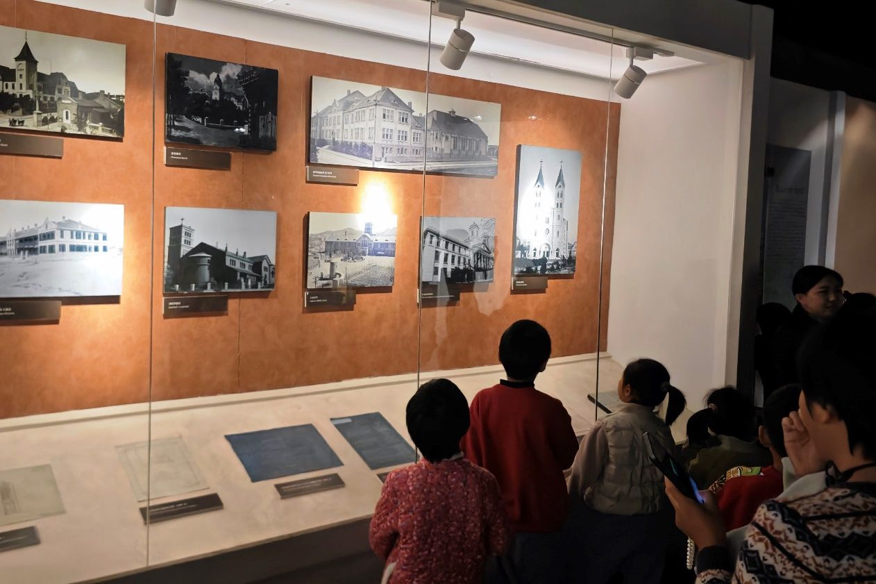 二楼的历史之旅让小记者读懂了城市的坚韧,三楼的专题展览则展现了青岛的成长与活力。这里的6个专题板块从城市建设、经济发展、文化传承等多维度,立体呈现了近现代青岛的发展轨迹。在“城市建设”展区,红瓦绿树的城市雏形在百年前的图纸上已然清晰,而如今高楼林立的现代化城区则彰显着时代的进步,小记者纷纷惊叹于城市规划的前瞻性与建设者的智慧。