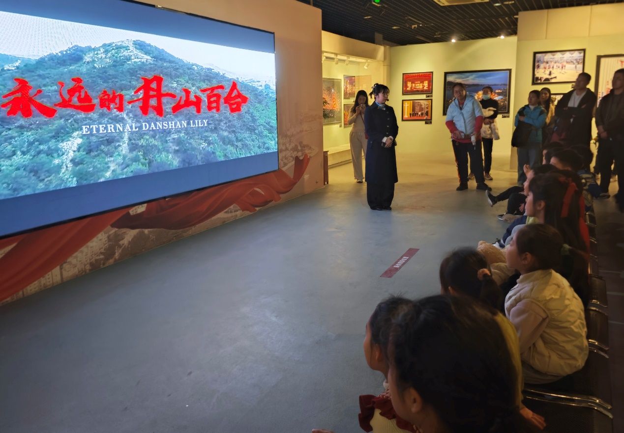 小记者观看档案题材微电影《永远的丹山百合》。
