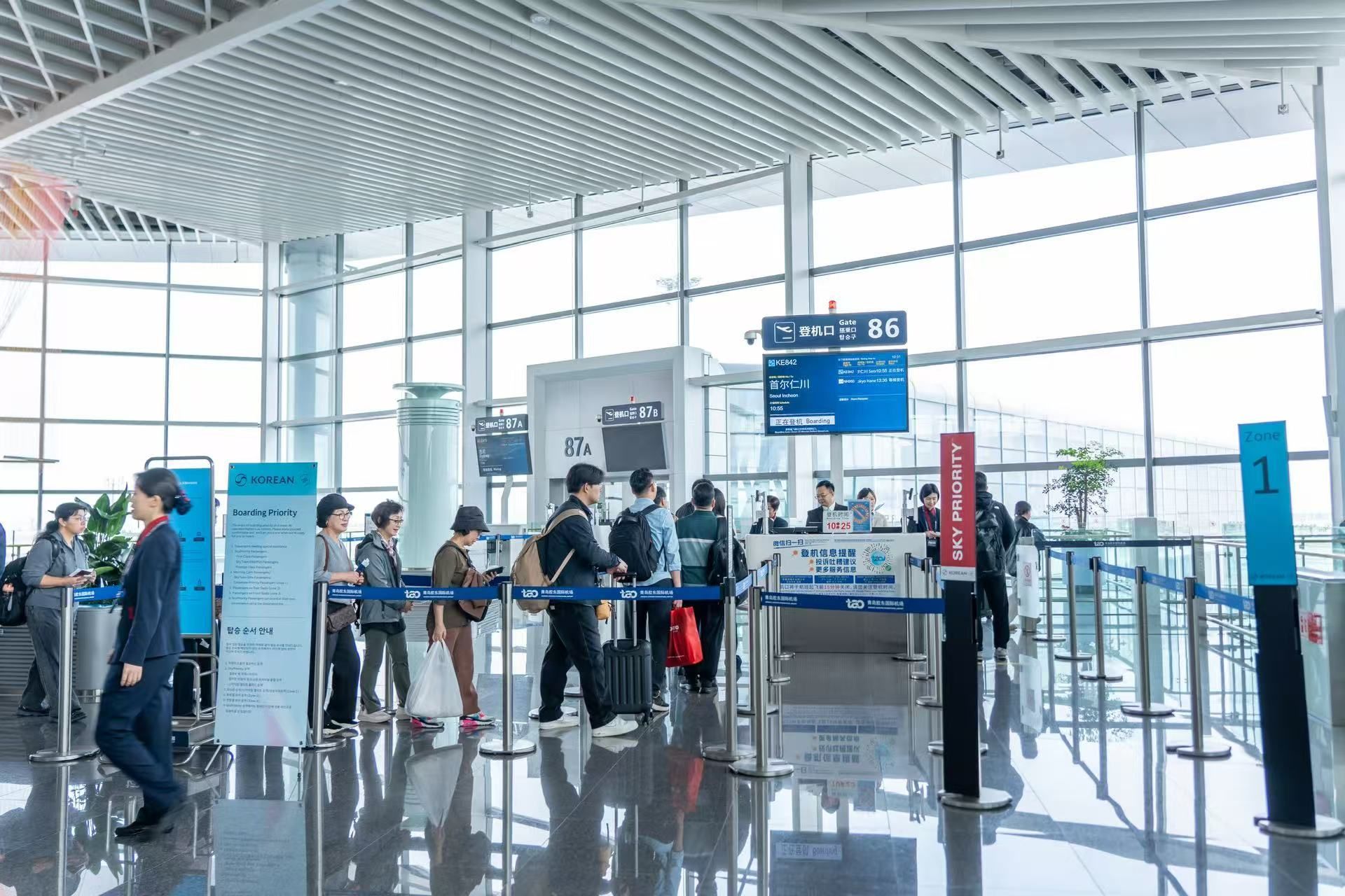 作为东北亚对外开放的重要门户枢纽,青岛机场凭借密集的航线网络与优质的中转服务,一直是经转日韩的热门选择。目前,青岛机场至韩国方向每日往返客运航班达37架次。继德威航空12月10日复航青岛—首尔航线、青岛航空12月21日新开青岛—大邱航线后,青岛机场已形成了直通首尔、釜山、济州、清州、大邱等多个韩国主要城市的空中通道。其中,首尔航线表现尤为突出,2025年客运架次和旅客量位列全国第二,成为中韩之间最繁忙的航线之一,为两地商务洽谈、旅游观光、探亲访友提供了“当日可达”的便捷选择。截至12月19日,根据山东边检总站青岛机场边检站统计,由青岛机场口岸出入韩国的内地居民共109万余人次,数量较去年同比增长约7%。